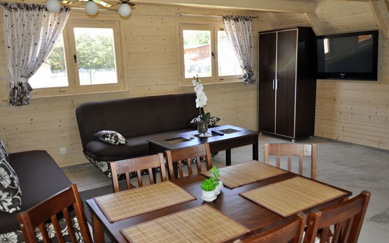 Salon - TV cyfrowa, LCD 50", Internet, dwie rozkładane kanapy, ława, stół + 6 krzeseł, komoda, lampka nocna, pościel
