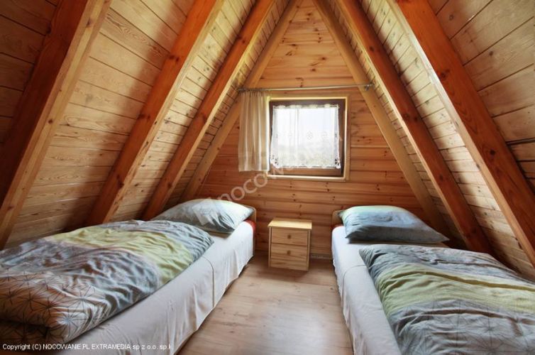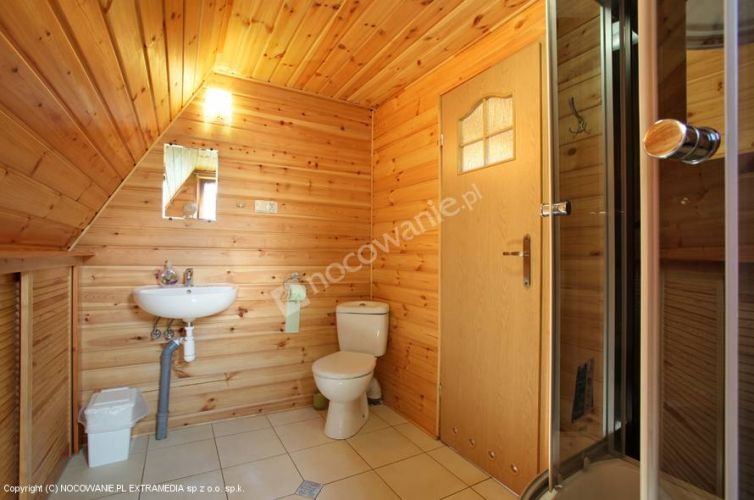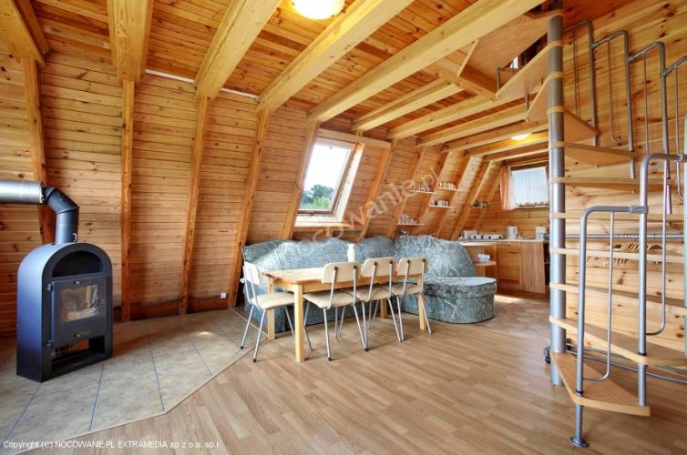 Dom drewniany, salon z kuchnią, łazienka, dwa pokoje na piętrze liczba miejsc noclegowych - 6 do 8 osób