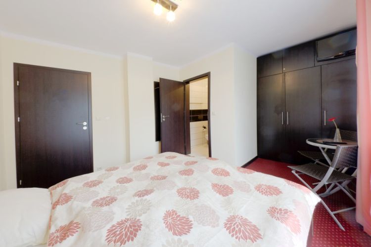 W naszej ofercie posiadamy wygodne, nowoczesne pokoje o wysokim standardzie. W każdym z nich znajduje się prywatna łazienka, dostęp do internetu bezprzewodowego Wi-Fi, TV.