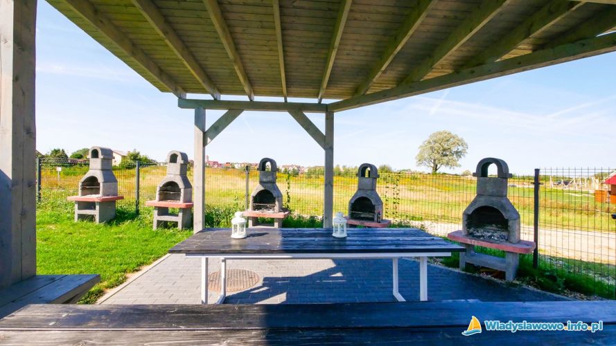 Domki przytulne , czyste , dobrze wyposażone , jest indukcja , mikrofala , suszarka na pranie , przybory kuchenne , pościel, nie ma jedynie ręczników wiec trzeba mieć swoje. Dla dzieci fajne atrakcje , plac zabaw , trampoliny i podgrzewany basen . Jest tez wiata grillowa , na plażę za darmo wozi melex , dla dzieci wieczorem odbywają się animacje , właściciele również bardzo mili , świetne miejsce . Serdecznie polecam :)
