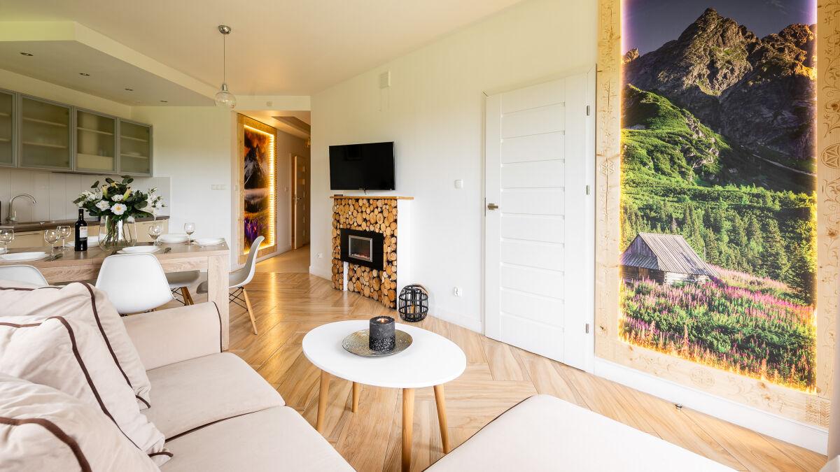 nowoczesnym z góralskim akcentem. W apartamentach staraliśmy się utrzymać