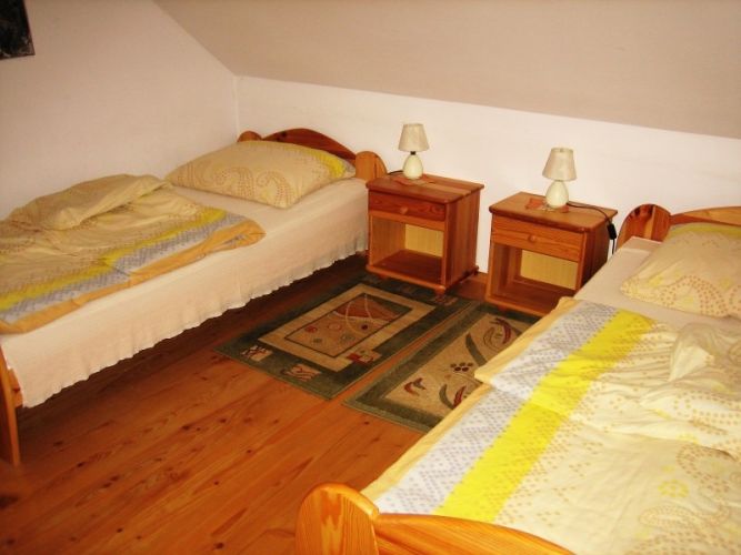 Oferujemy domek składający się z dwóch niezależnych segmentów, z których każdy o powierzchni użytkowej 110 m2 i możliwości zakwaterowania do 9 osób zawiera: 3 sypialnie (2,3,4-osobowe), 2 łazienki, w pełni wyposażoną kuchnie z jadalnią, salon z kominkiem, drewniany taras ze stołem.