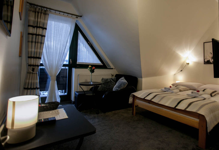 Oferujemy Państwu wygodne pokoje z pięknym widokiem na Tatry, stoki pobliskich wyciągów narciarskich oraz na Termy Białka. Wszytskie pokoje posiadają własne kompletne łazienki (z kabiną prysznicową i brodzikiem, umywalka, lustro z dodatkowym oświetleniem, grzejnik, toaleta, suszarka hotelowa do włosów, dozownik z żelem, wieszaki, wentylator). Ponadto czajnik bezprzewodowy, ręczniki, dostęp do internetu wi-fi.