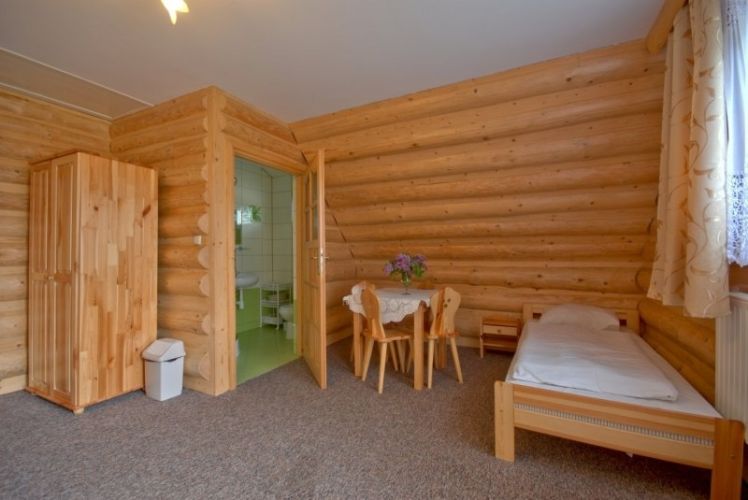 Oferujemy zakwaterowanie w drewnianych domkach oraz w pokojach w Budynku Głównym. Do Państwa dyspozycji oddajemy pokoje 2,3,4,5 osobowe z łazienkami i TV oraz bezprzewodowym internetem Wi-Fi.