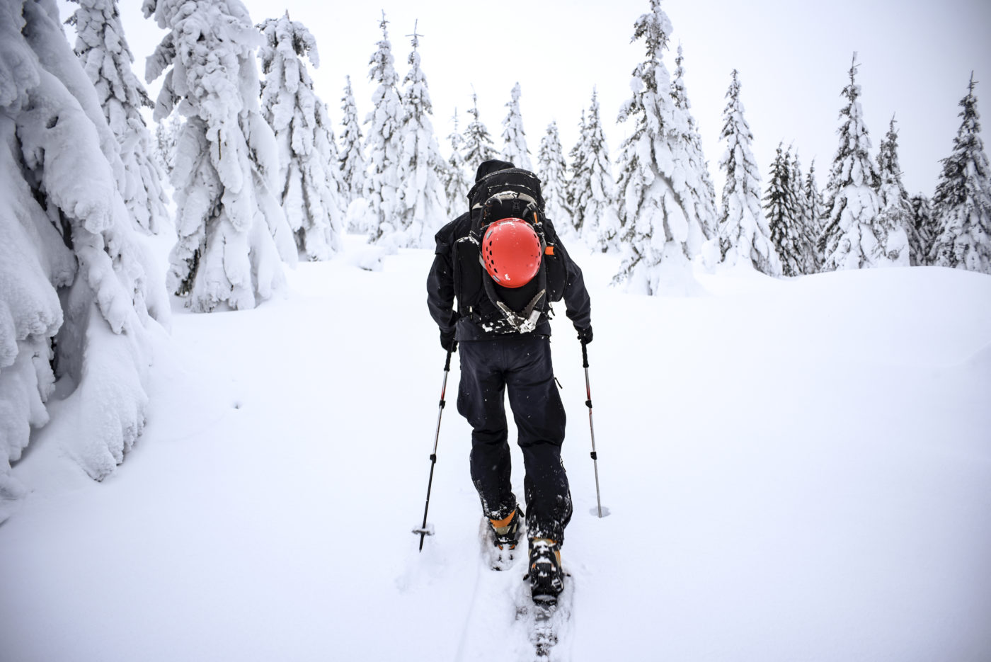 Zimowe podłoże to wymagający teren. Dlatego warto ze sobą zabrać kije trekkingowe – korzystnie wpłyną na komfort marszu oraz mogą posłużyć do badania terenu. W zależności od warunków panujących na trasie przydatne mogą się okazać również rakiety śnieżne, dzięki którym nie będziemy się zapadać w śniegu.