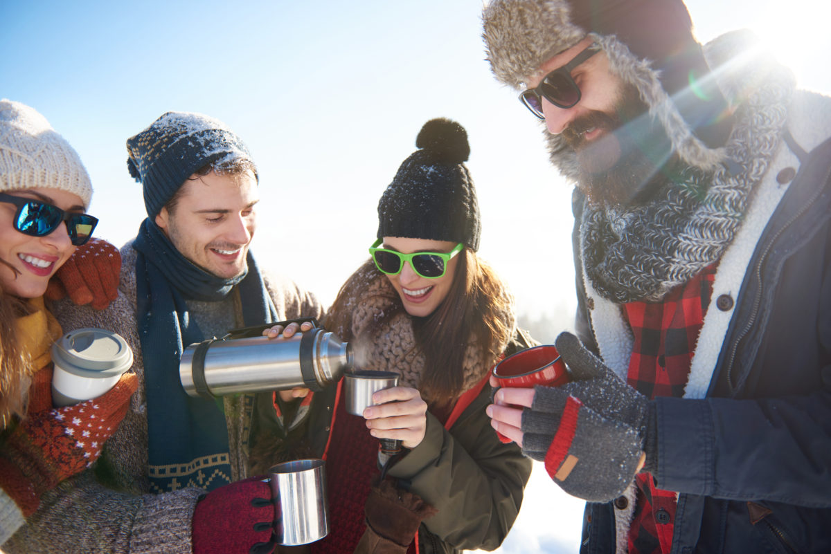 Jedzenie daje energię i pomaga się rozgrzać. Zimą powinno więc być bardzo energetyczne. Na zimowe wędrówki świetnie sprawdzi się czekolada lub batony musli. W termosie obowiązkowo gorący napój, np.herbata (może być z prądem 😉 ).Warto zaopatrzyć się również w termos obiadowy. W ten sposób będziemy mogli zjeść na szlaku ciepły posiłek, jeśli nie planujemy postoju w schronisku.