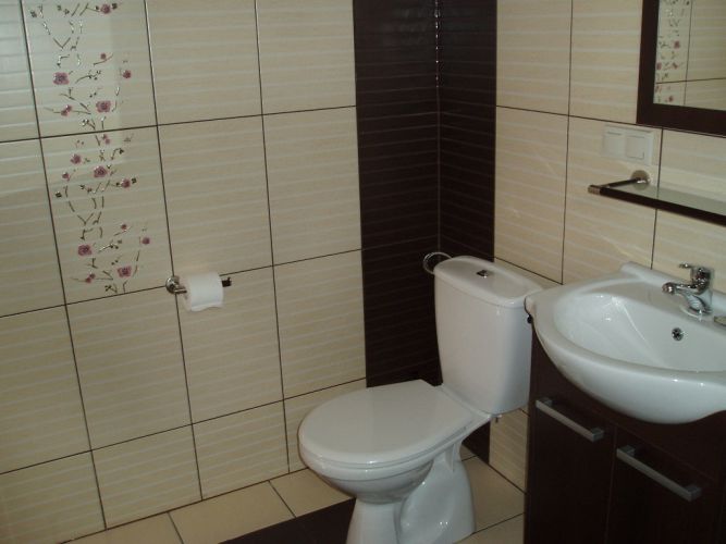 Łazienka – wykafelkowana, wyposażona w kabinę prysznicową, umywalkę, toaletę, o której sterylną czystość szczególnie dbamy