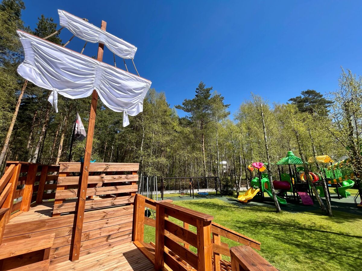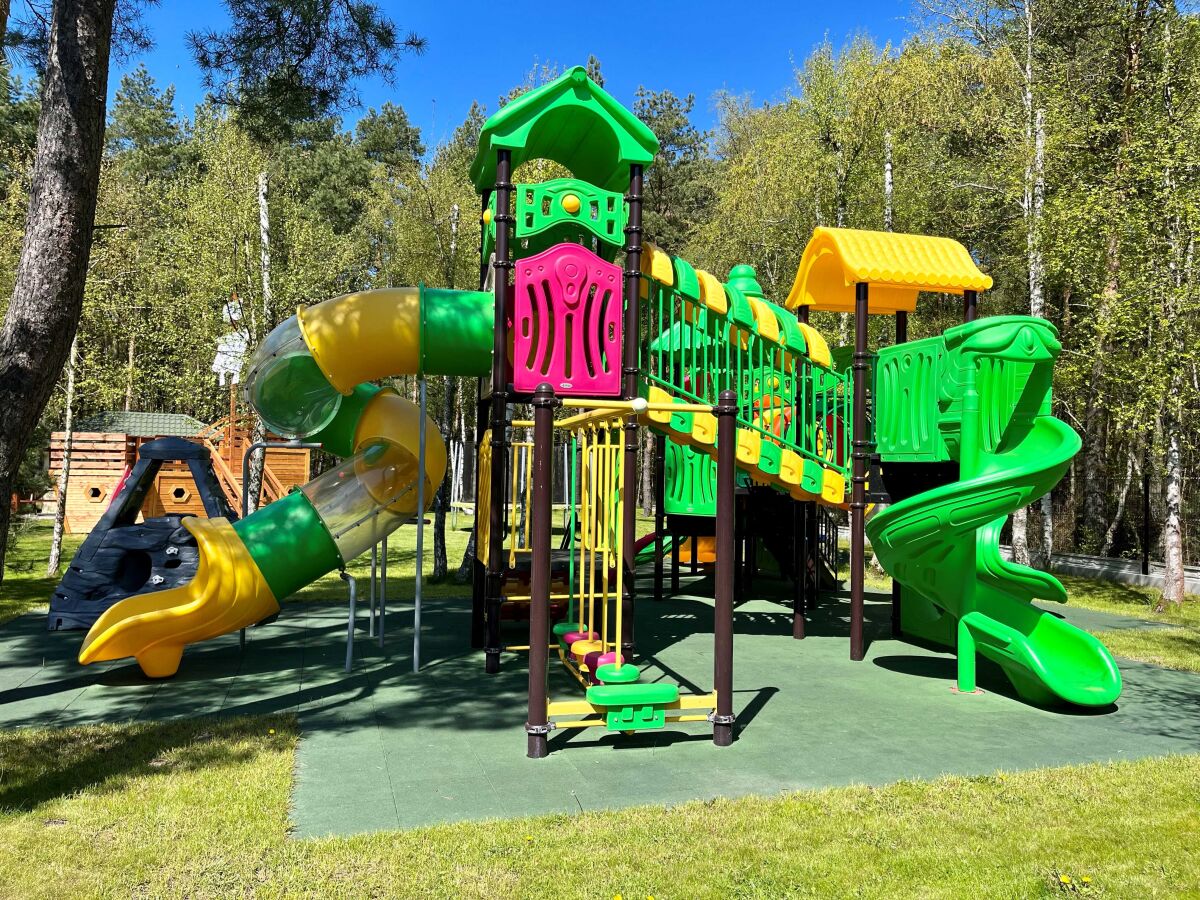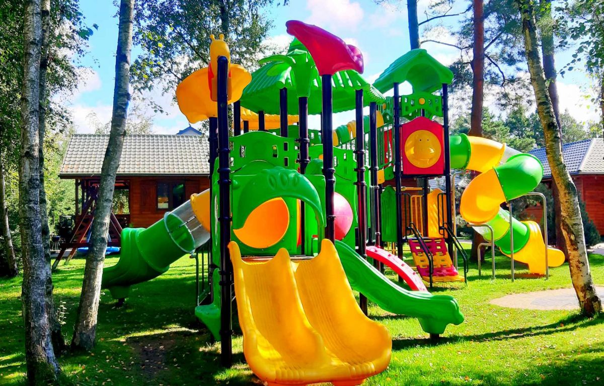 Cały kompleks domków jest ogrodzony i chroniony. Nasz obiekt to idealne miejsce wypoczynku dla rodzin z dziećmi. Bezpieczny i komfortowy. Z myślą o najmłodszych gościach przygotowaliśmy kolorowy FIGLO RAJ z atrakcjami dostosowanymi do dzieci w różnym wieku: Wielkim drewnianym Statkiem Pirackim o dł. 6m dla piratów ze zjeżdżalnią i wspinaczką oraz zadaszonym dolnym pokładem jako bawialnią, Rycerskim Zamkiem dla małych rycerzy i księżniczek, Krainą Kubusia Puchatka, Piaskownicą w kształcie Statku, drewnianymi konstrukcjami do wspinania oraz innymi bezpiecznymi urządzeniami takimi jak zjeżdżalnia, huśtawki oraz dużą trampoliną. Figlo Raj położony w pięknym, zalesionym zakątku naszego obiektu.