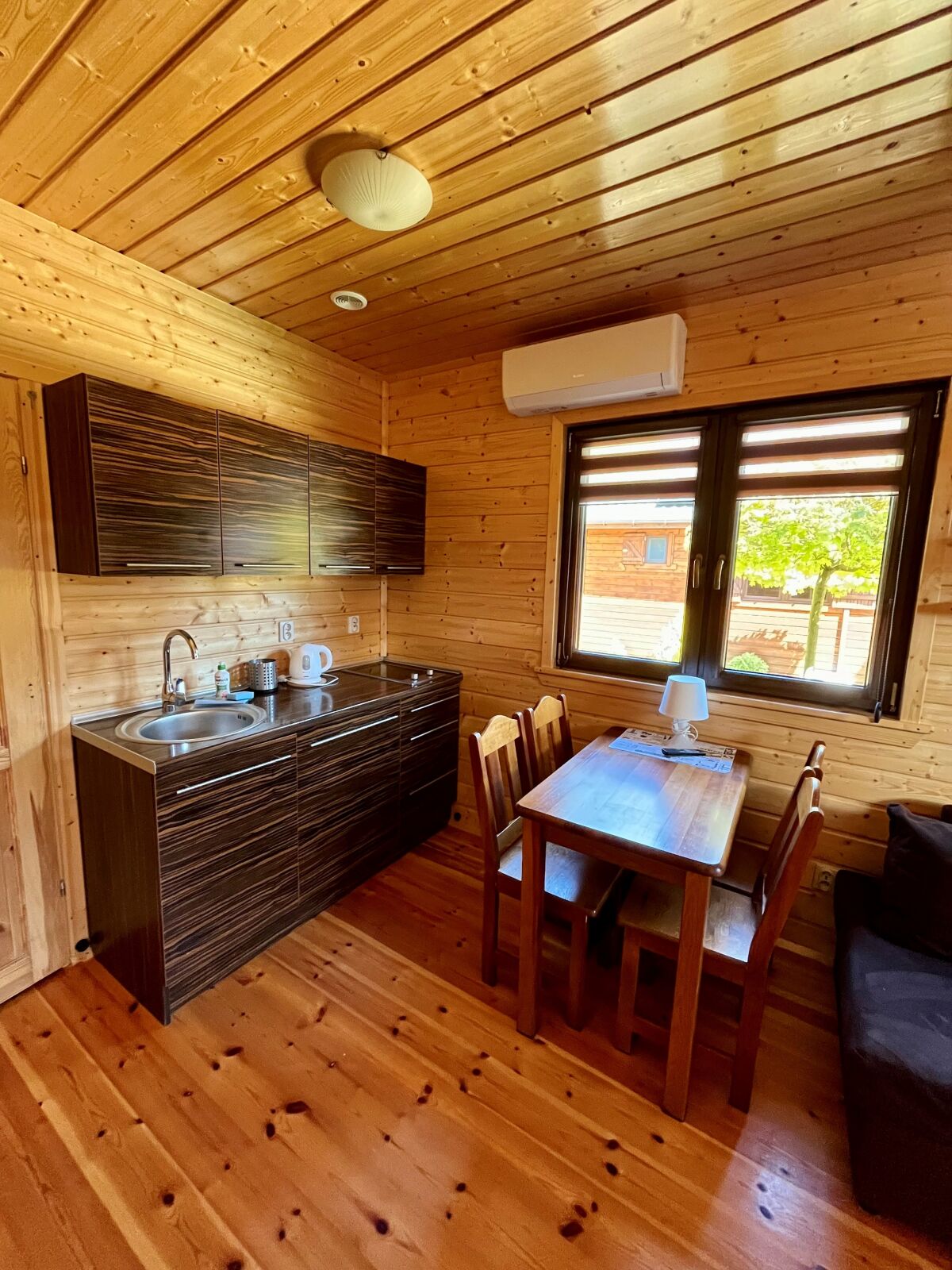 - w każdym domku 2 osobne, zamykane sypialnie + salon z aneksem kuchennym i jadalnią + łazienka