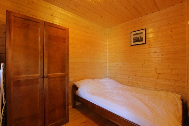 Sypialnia nr 1 – wyposażona w łóżko piętrowe (3 osobowe), komodę, komplet pościeli dla 2-3 osób, dodatkowo dla zachowania szczególnej czystości łóżek wszystkie materace pokryte są dodatkowymi ochraniaczami antyalergicznymi i wodoodpornymi gwarantującymi zabezpieczenie przed wszelkiego rodzaju płynami, ochraniacze systematycznie prane gwarantują poczucie czystości i wygodnego wypoczynku
