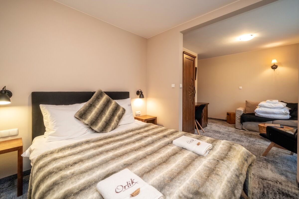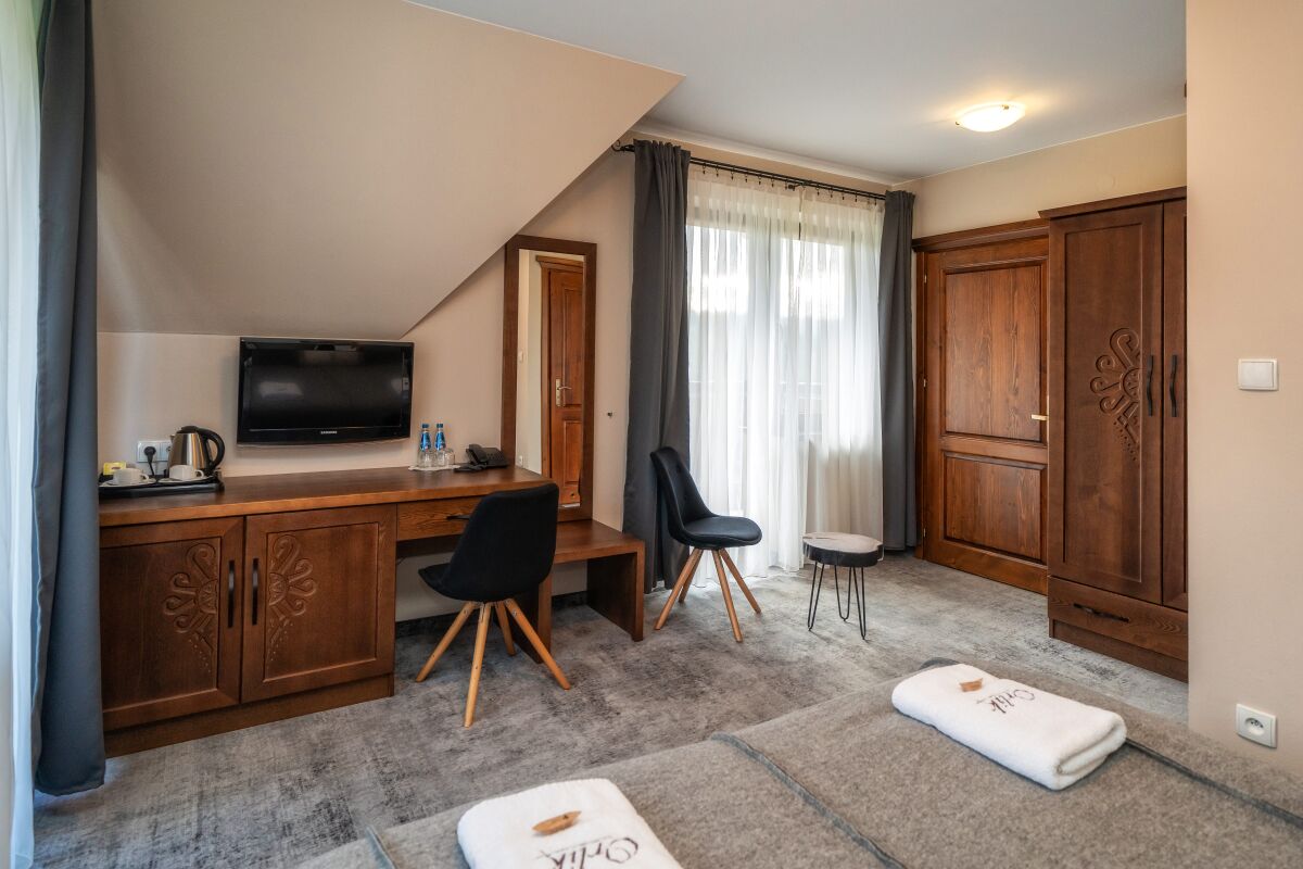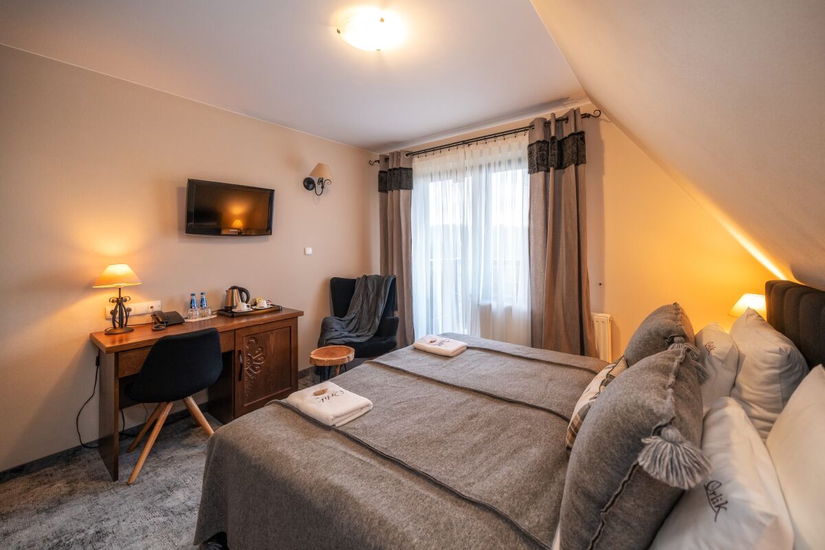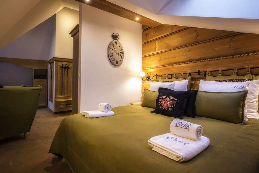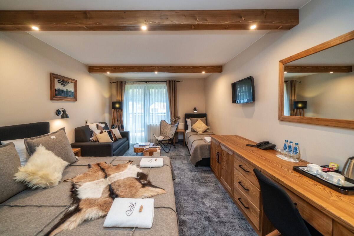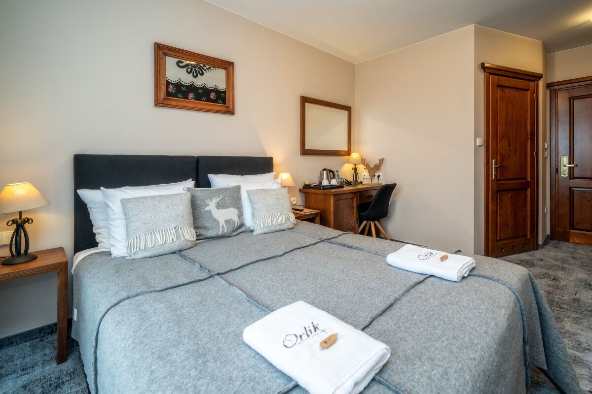Nasz hotel w Bukowinie Tatrzańskiej oferuje pokoje gościnne typu CLASSIC, CLASSIC PLUS, LUX (salon z sypialnią) jedno-, dwu-, trzy- i czteroosobowe. W niektórych pomieszczeniach istnieje możliwość wstawienia dostawki. W cenę każdego noclegu wliczone jest śniadanie w formie bufetu. Gościom pensjonatu Orlik proponujemy również promocje na pobliskie baseny termalne w Bukowinie Tatrzańskiej i Białce Tatrzańskiej oraz rabaty na wypożyczenie sprzętu sportowego.