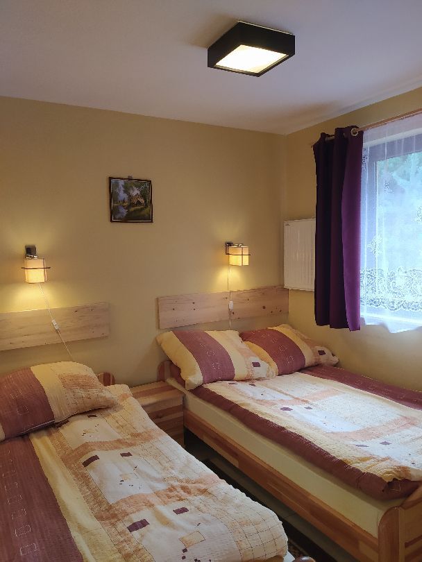 • łóżko podwójne oraz pojedyncze (drewniane z materacami)