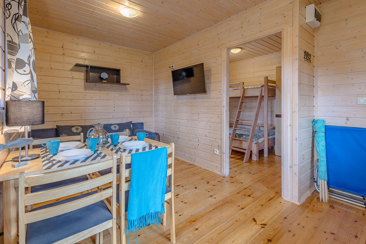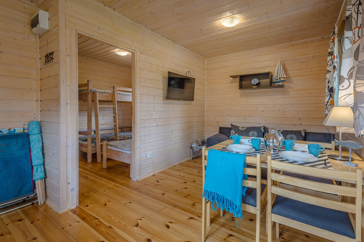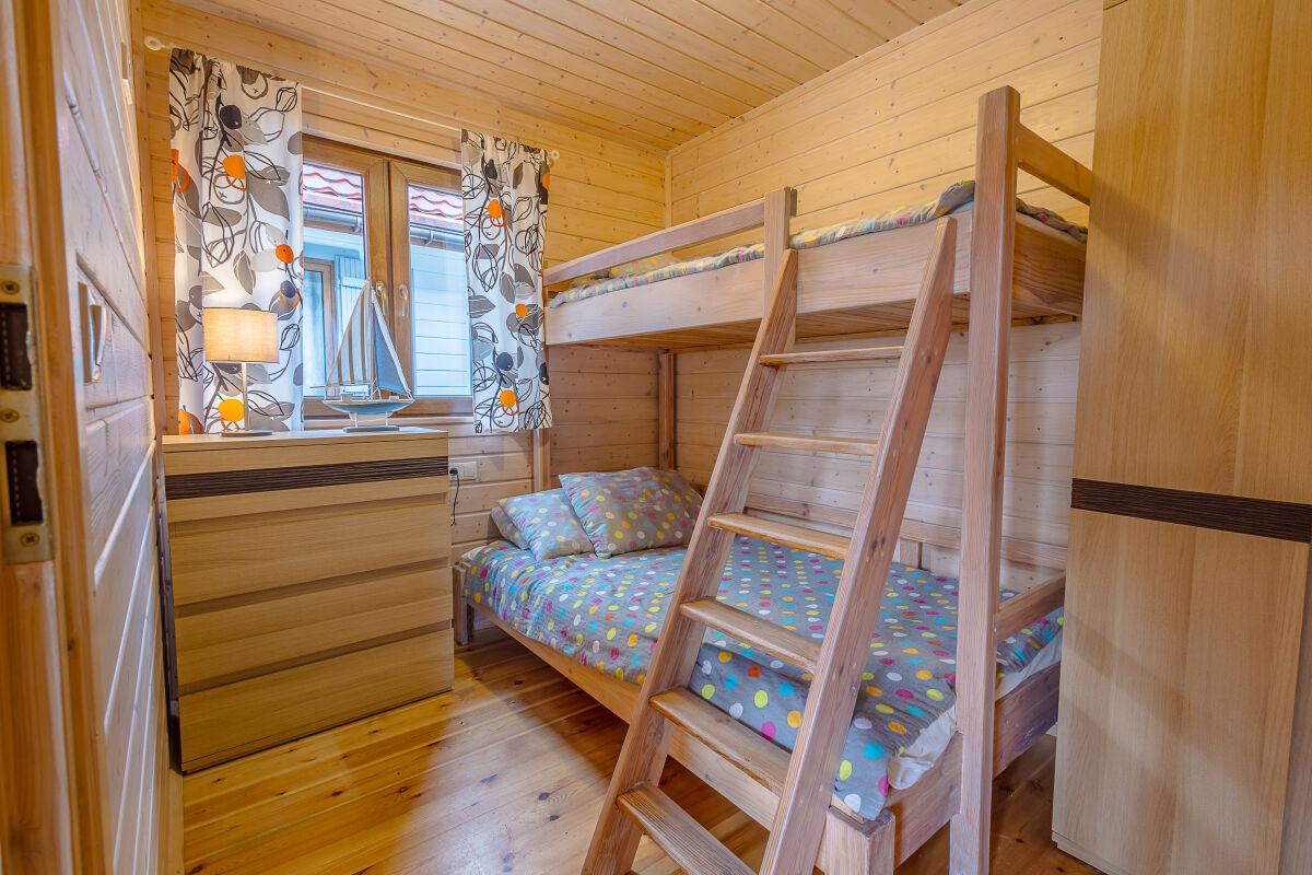 • sypialnia (domek 2-pokojowy): 3 miejsca do spania, szafa, komoda,