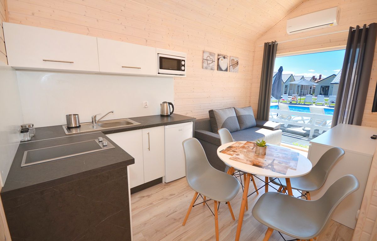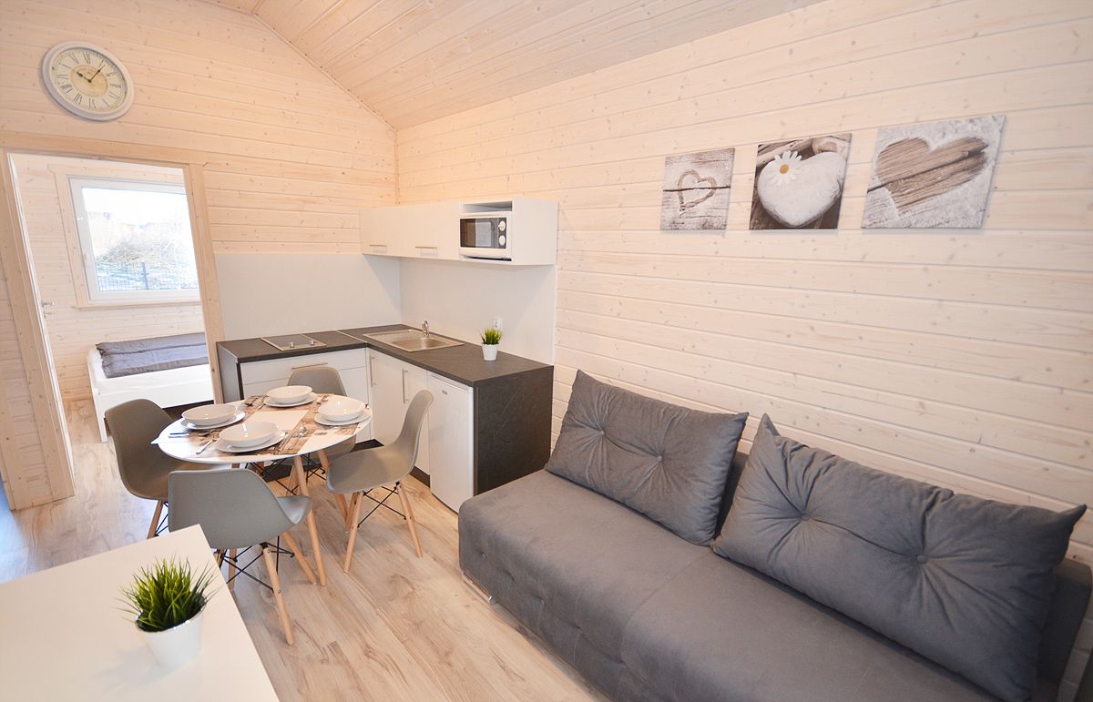 • w miesiącach czerwiec i wrzesień, w przypadku pobytów na mniej niż 5 dób, dodatkowa opłata za końcowe sprzątanie domku (120 zł).