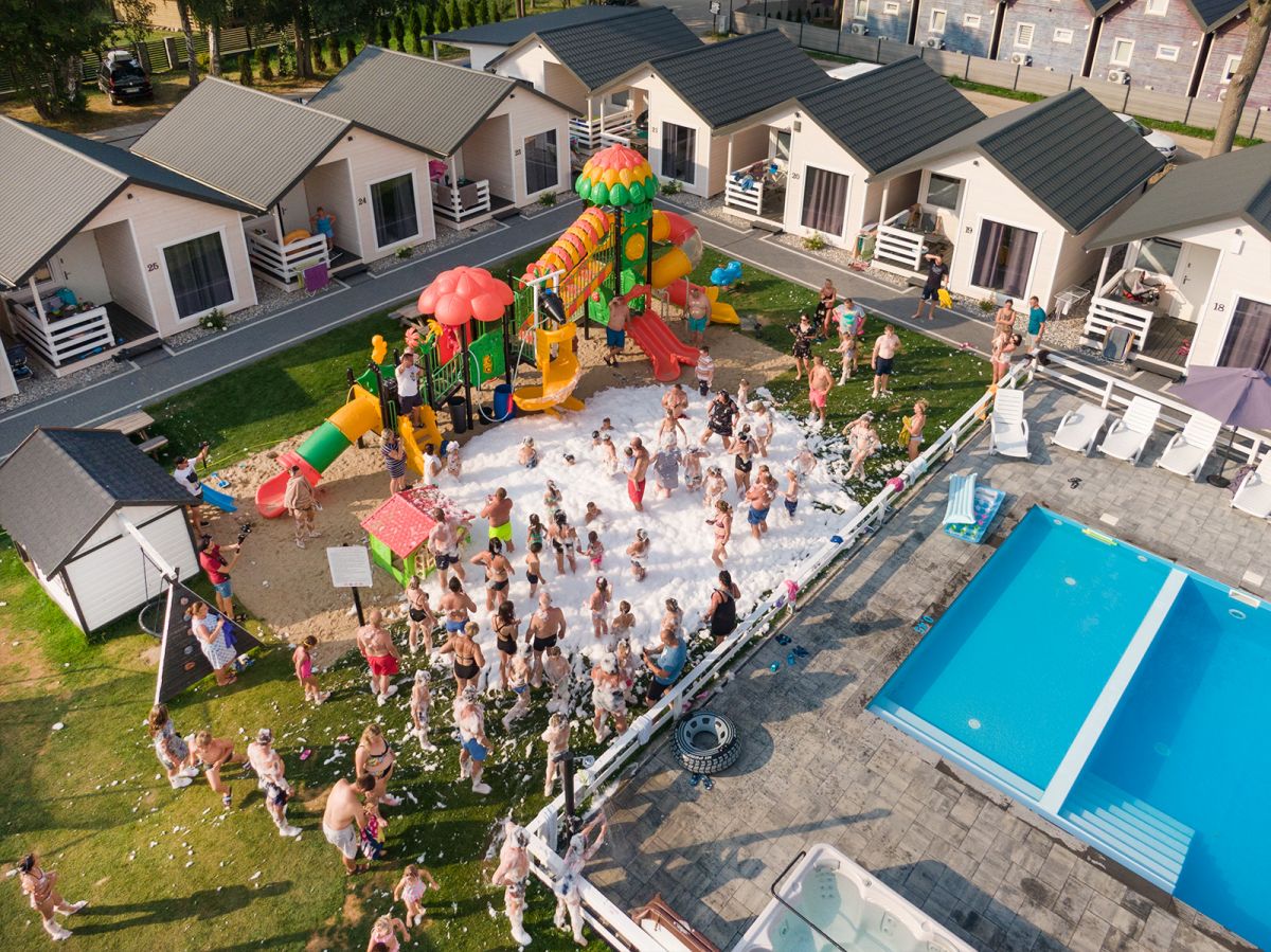 Dla wypoczywających u nas gości przygotowaliśmy komfortowe i nowocześnie urządzone domki z tarasami zewnętrznymi. Lokalizacja ośrodka w zacisznej, zielonej okolicy sprzyja udanemu wypoczynkowi. Liczne atrakcje na terenie ośrodka oraz w okolicy urozmaicą Państwu czas w oryginalny sposób.