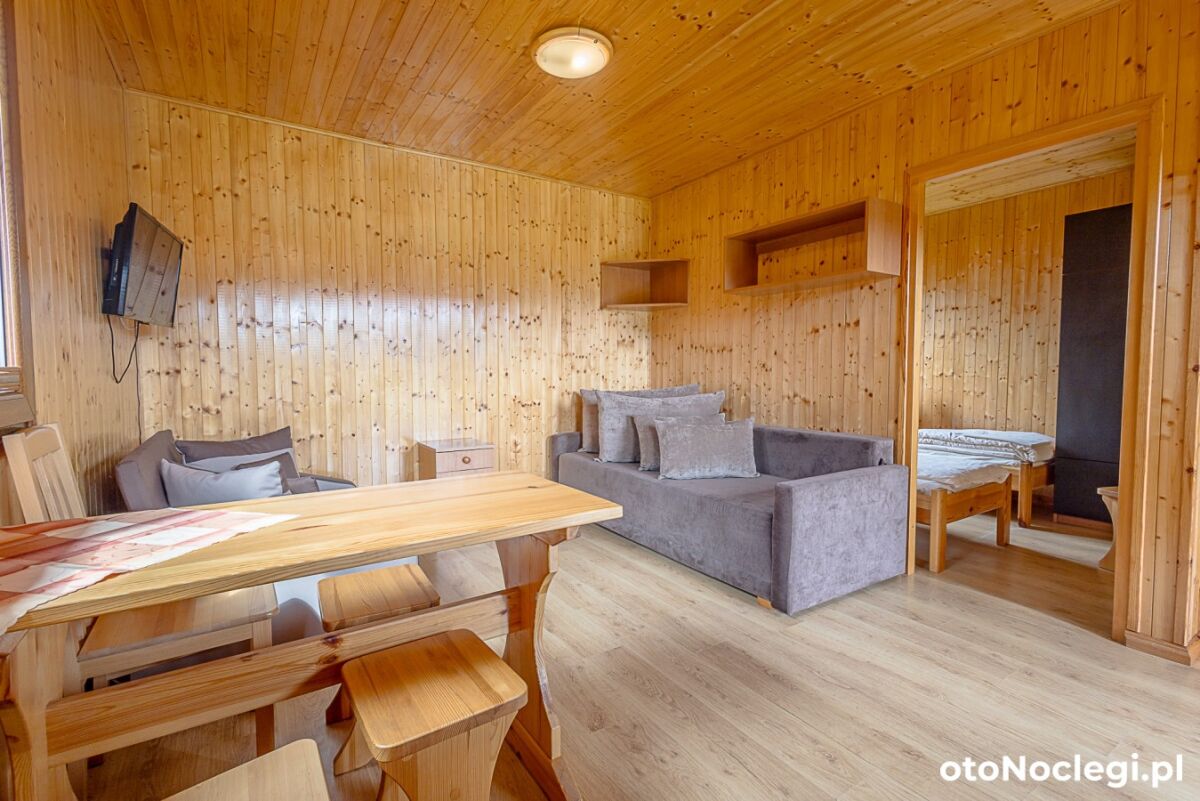 Nasze domki (4 i 5-6 osobowe) to gwarancja udanego wypoczynku. Zapewniamy bezpłatny parking oraz place zabaw dla dzieci. Wnętrza wykończone drewnem tworzą przytulną atmosferę, a zadaszone tarasy sprzyjają relaksowi.