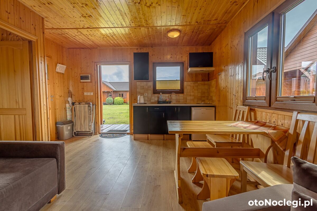 • Domek z tarasem i grillem. Dwa pokoje: salon z aneksem kuchennym oraz sypialnia.