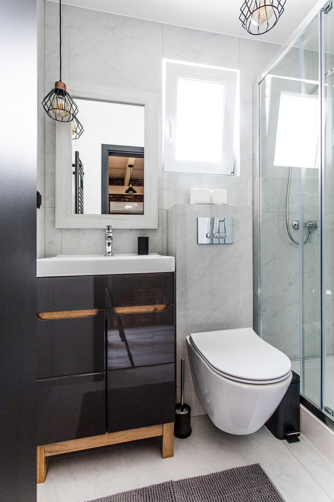 • 2 łazienki (jedna z nich wyposażona w pralkę)
