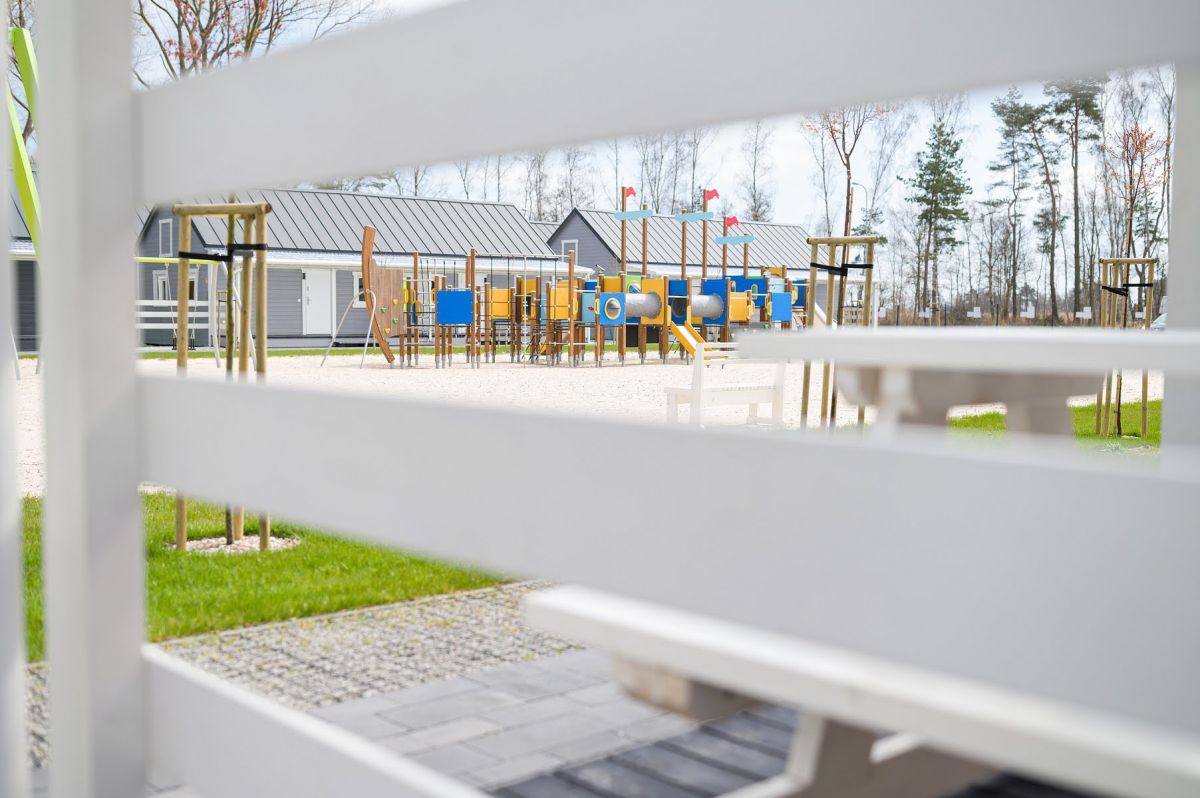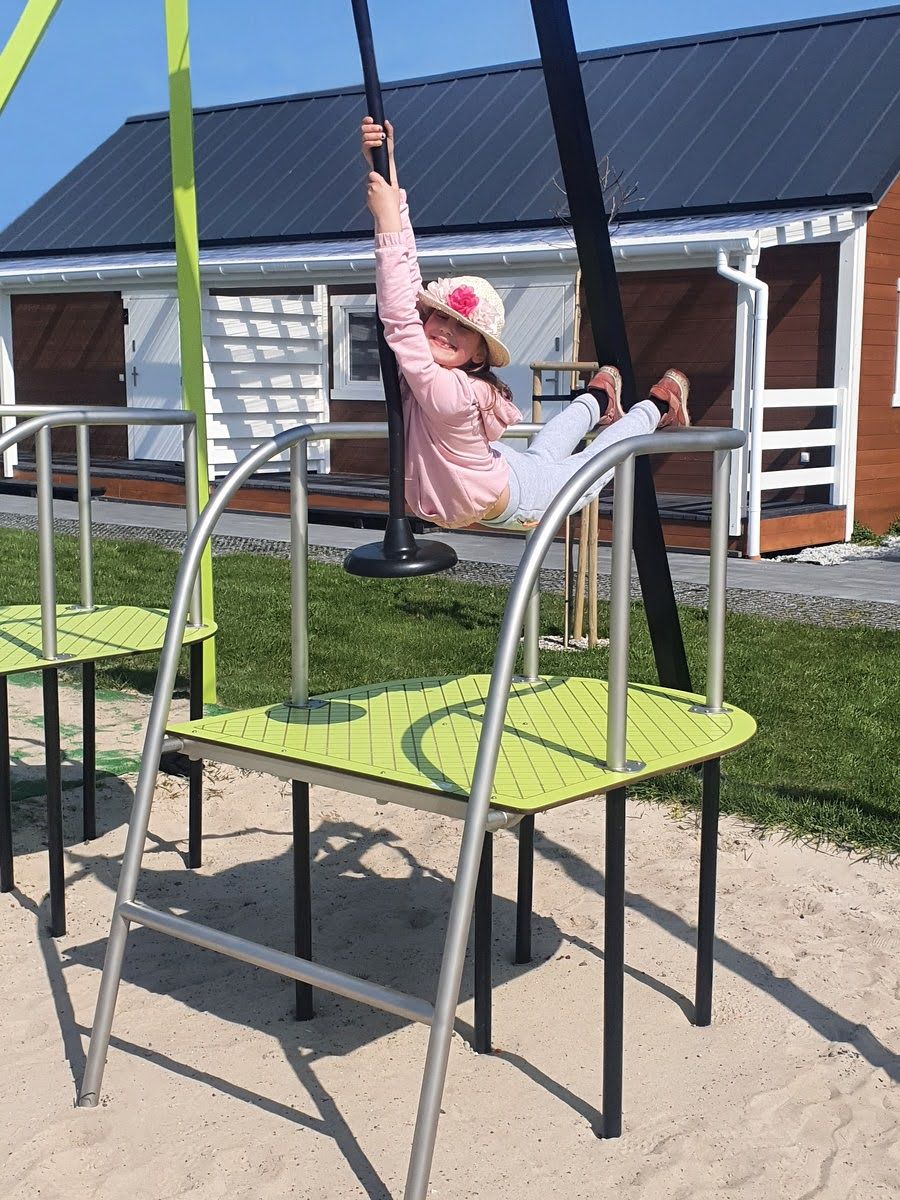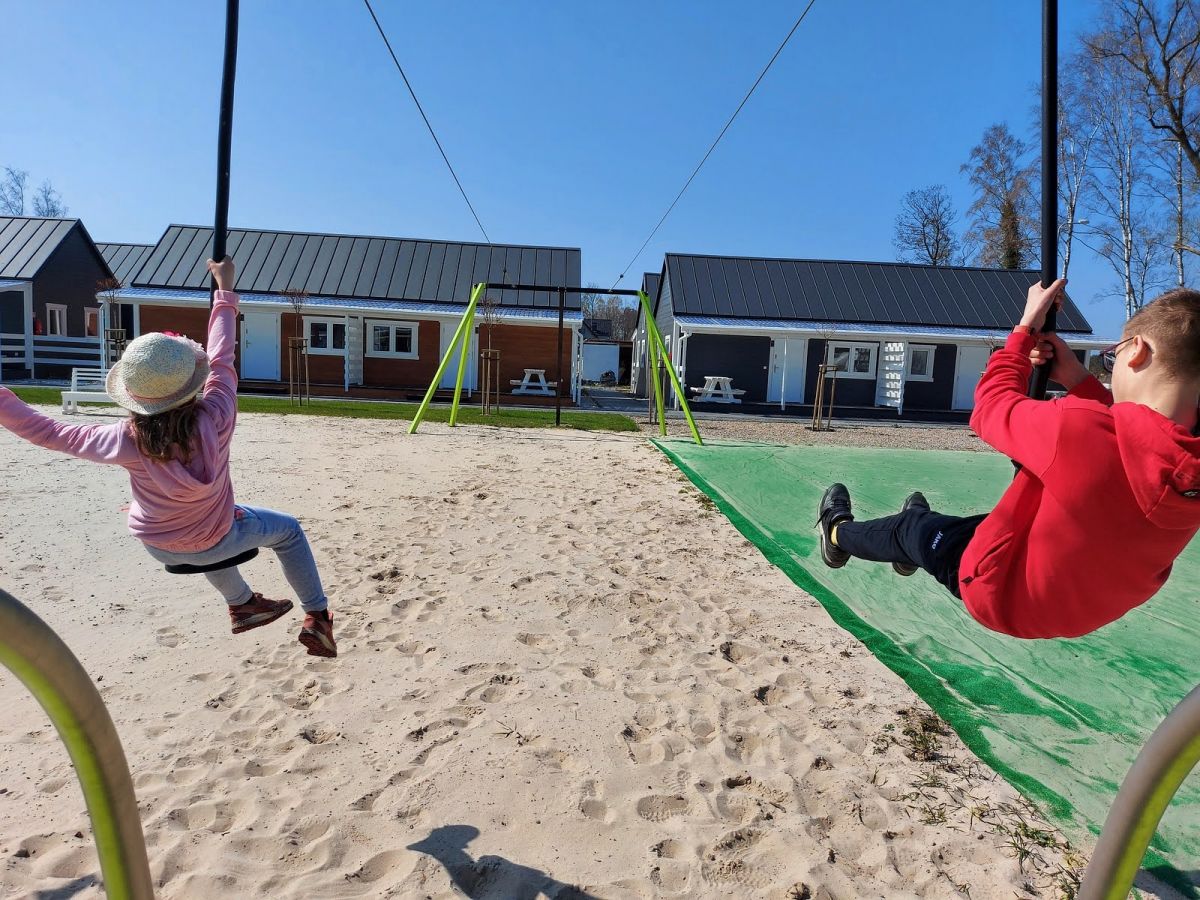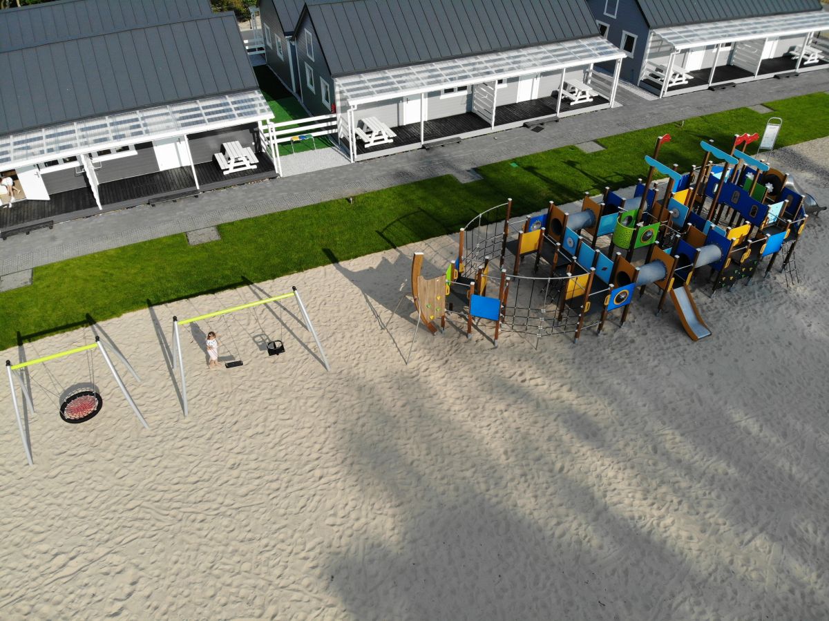 Z domków macie Państwo doskonały widok na bawiące się na placu zabaw , Wasze pociechy.