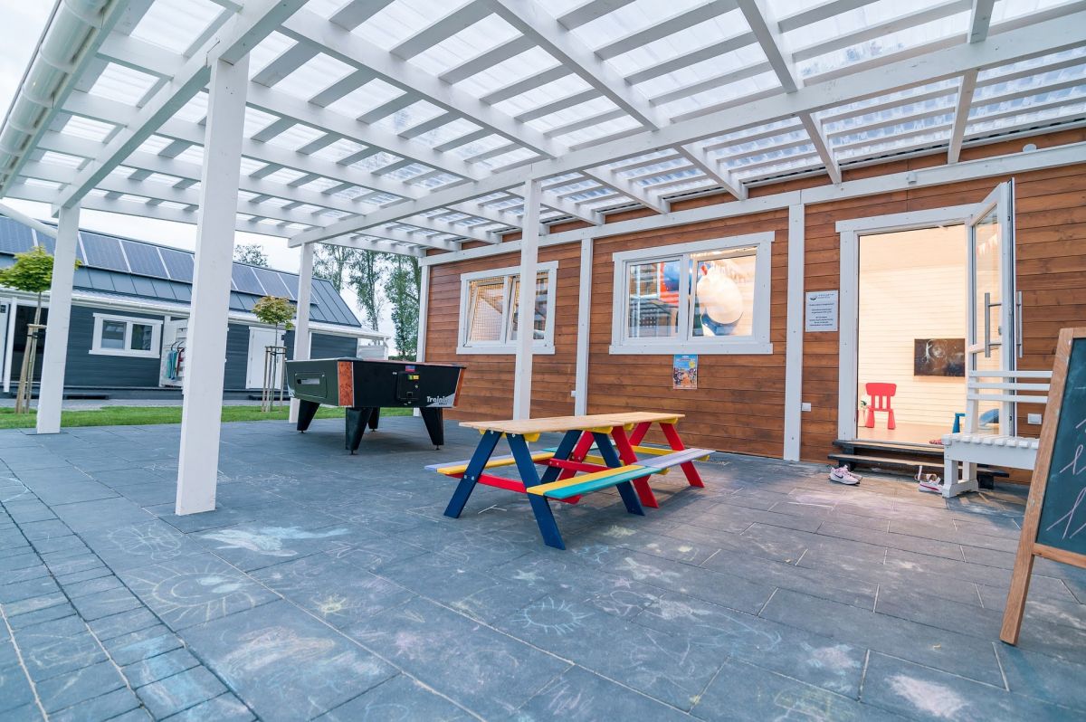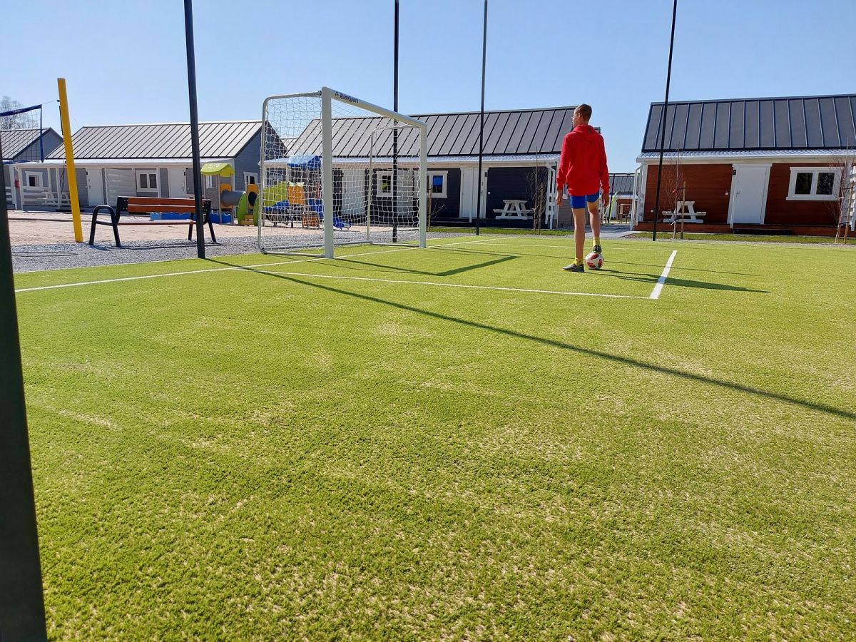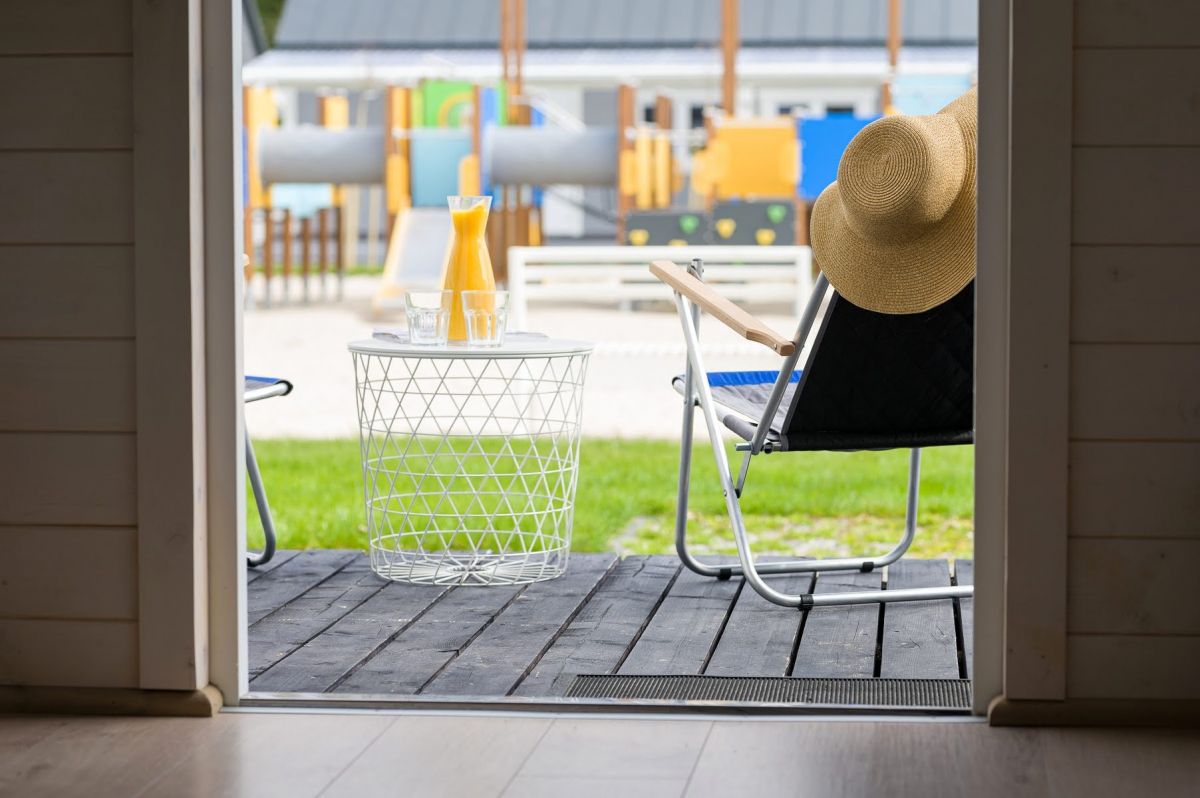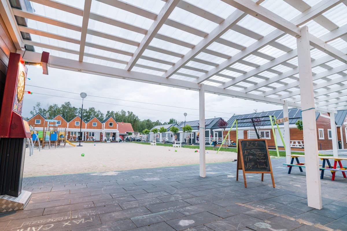 Z domków macie Państwo doskonały widok na bawiące się na placu zabaw , Wasze pociechy.