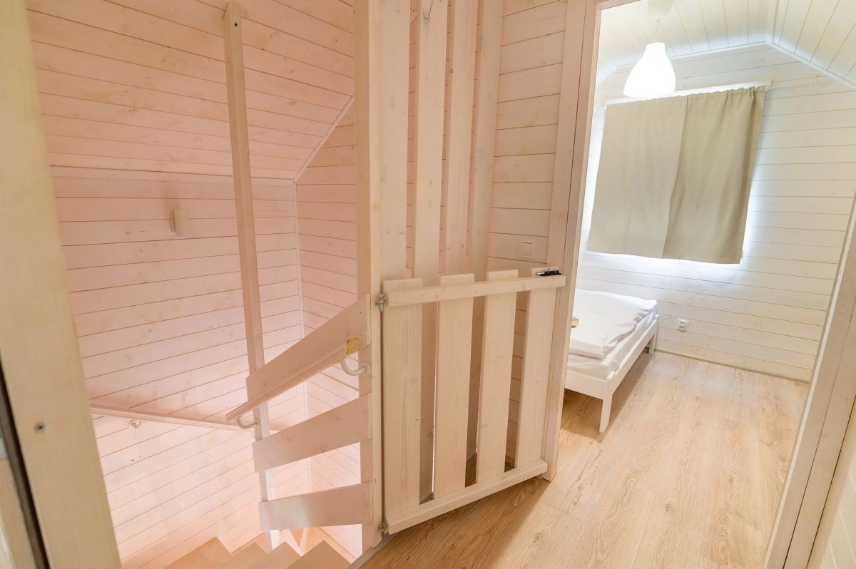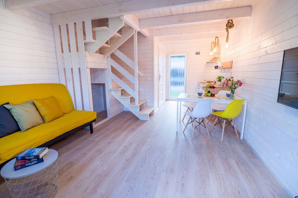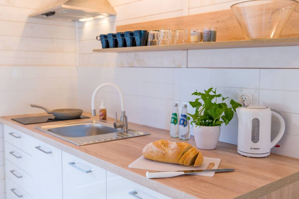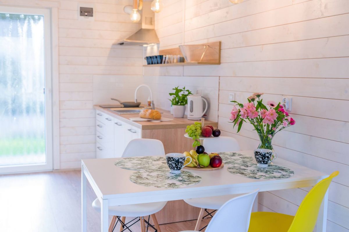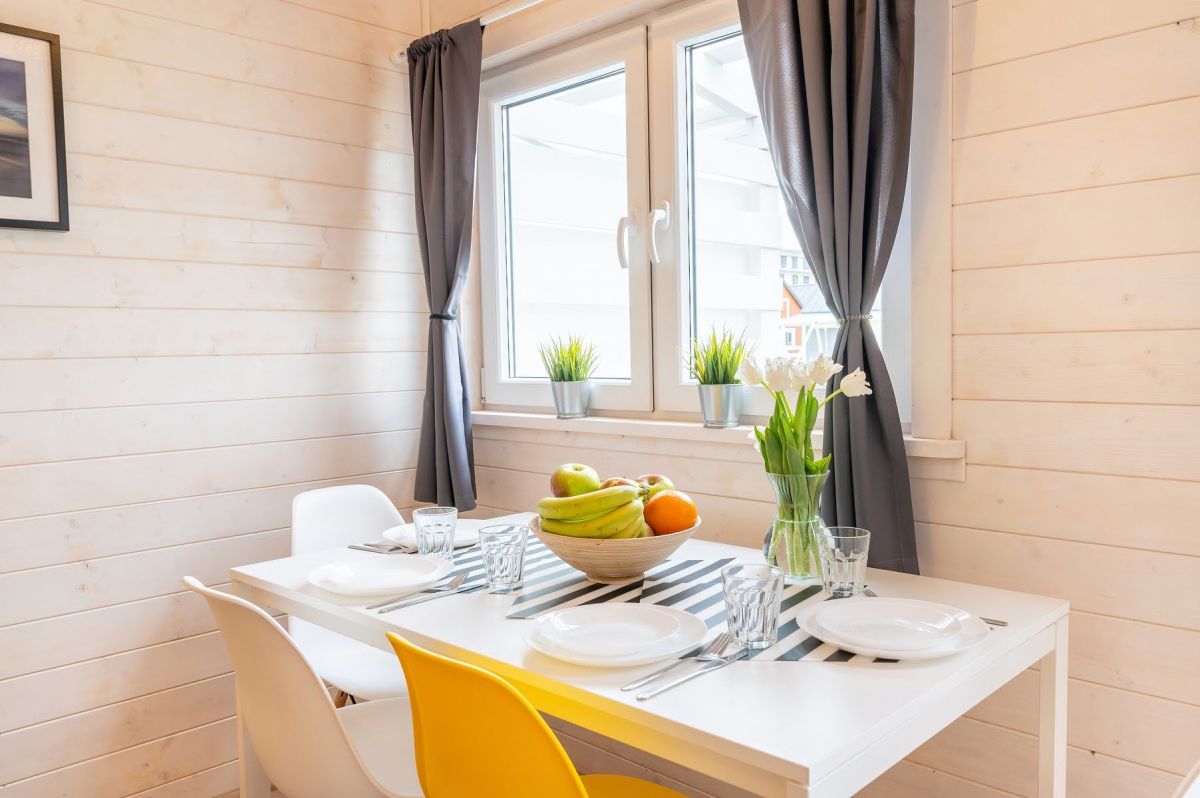 Nasze domki drewniane są nowe, komfortowe i doskonale wyposażone. Każdy z domków posiada salon oraz 2 sypialnie. Jedną z łożem małżeńskim , drugą z dwoma łóżkami pojedynczymi. Kuchnia wyposażona jest w lodówkę, kuchenkę oraz zmywarkę.