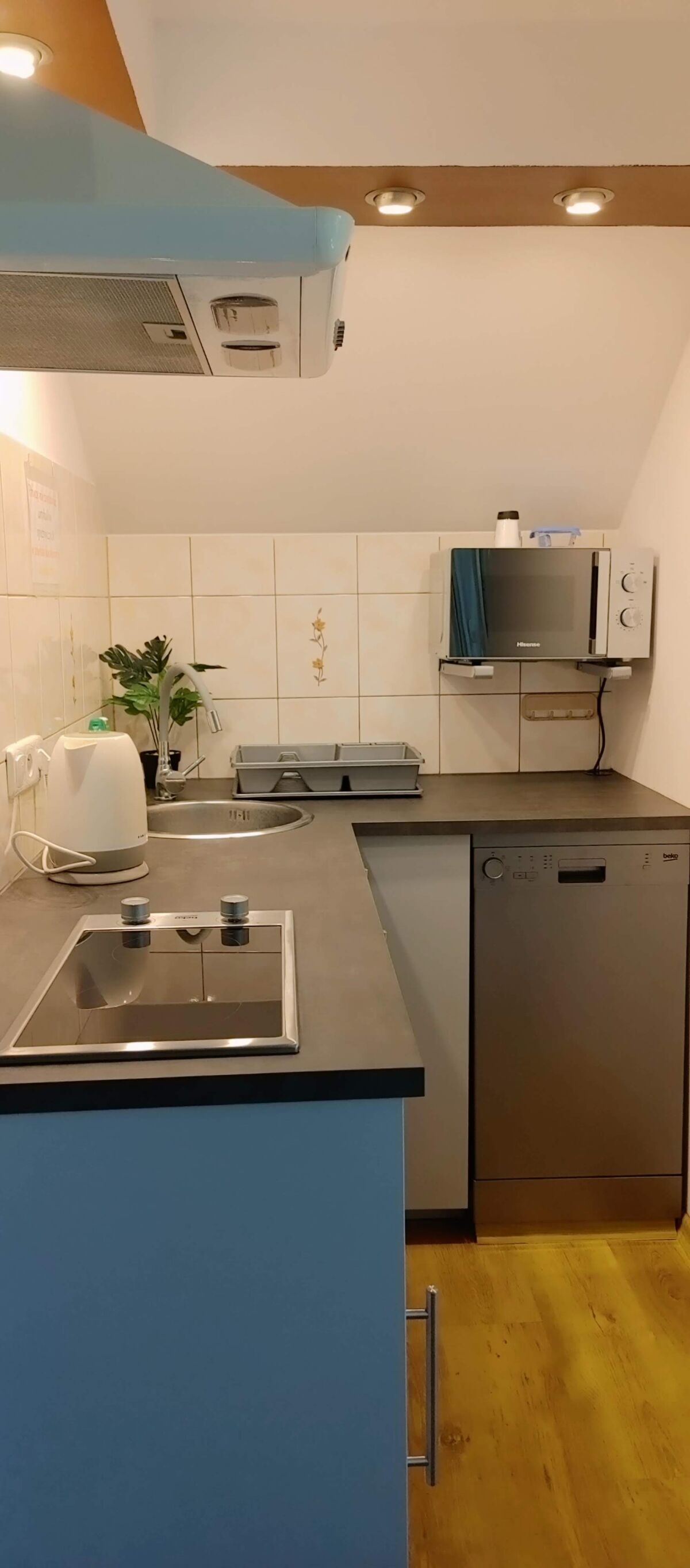 Aneks kuchenny ( kuchenka, mikrofalówka, zlewozmywak, naczynia i sztućce oraz czajnik bezprzewodowy, zmywarka do naczyń) i duży hall do dyspozycji wszystkich pokoi.