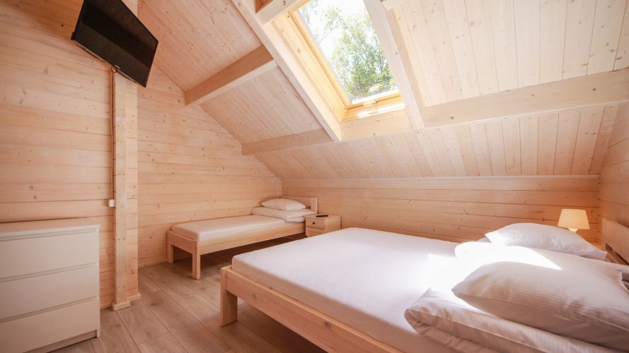 - Domek piętrowy: 550 zł (6 os.), 600 zł (7 os.), 650 zł (8 os.)
