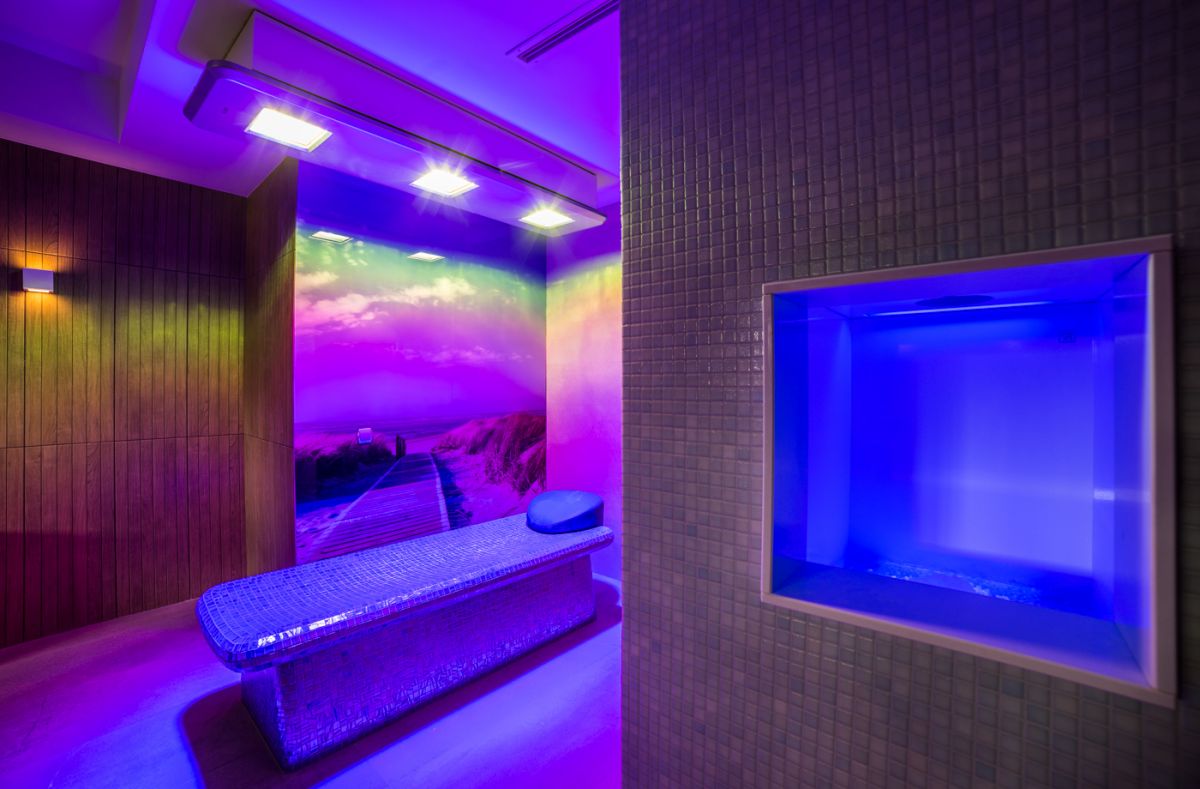 - Strefa SPA – Łaźnia parowa z aromaterapią, Sauna sucha z systemem LIFTLIGHT, Prysznice ślimakowe z kubełkiem do schładzania, Lodowa studnia, Podgrzewane leżanki i Słoneczna łąka.