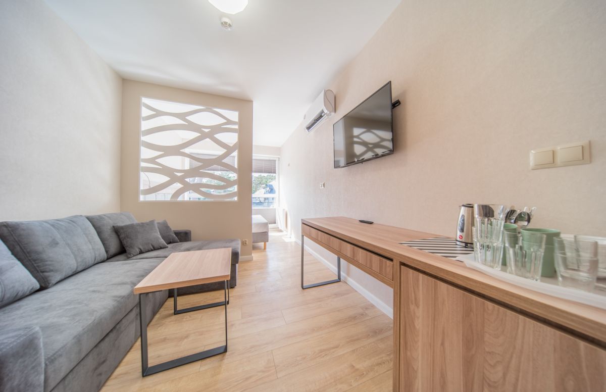 - Rodzinne apartamenty (do 6 os.) – duże, nowoczesne wnętrza dla większego komfortu, klimatyz.