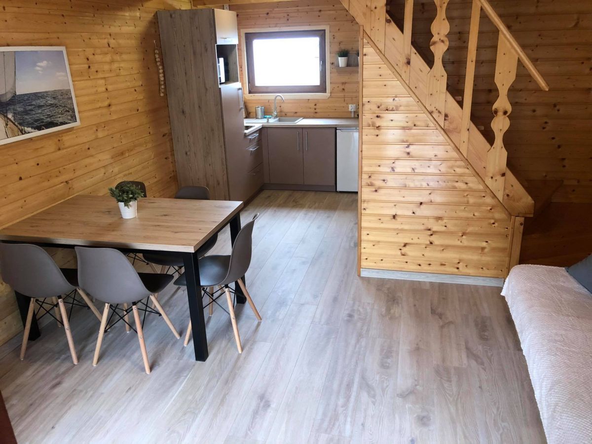 Byliśmy tu na 4dni. Pogoda nam nie dopisała, ale to bez znaczenia. Było nas 6, w tym 2dzieci. Na terenie jest plac zabaw z trampoliną, huśtawkami, zjeżdżalniami i piaskownicą. Domki bardzo dobrze wyposażone. Chociaż obiady i kolacje jedliśmy na mieście, ale jakbyśmy chcieli gotować sami to byłoby jak. O czystość w domku. Mieliśmy płyn do mycia naczyn, gąbkę, mydło i papier toaletowy w domku na wejściu. Obsługi nie widzieliśmy po tym jak się zakwaterowaliśmy, ale można było zawsze do nich zadzwonić. Także na +, ze nikt się nie kręcił, nie pytał co chwila czy nam dobrze, czy nie, chociaż może w ładną pogodę chodza częściej, bo u nas lało większość czasu. O porządek trzeba samemu zadbać. Jest na miejscu wifi. Brama wjazdowa i furtka jest na kod. Wg mnie świetne miejsce, jak nie lubi się ciągłej obsługi latającej dookoła, a chce się odpocząć w luźnej atmosferze. Domków jest sporo, sąsiadów nie słyszeliśmy.