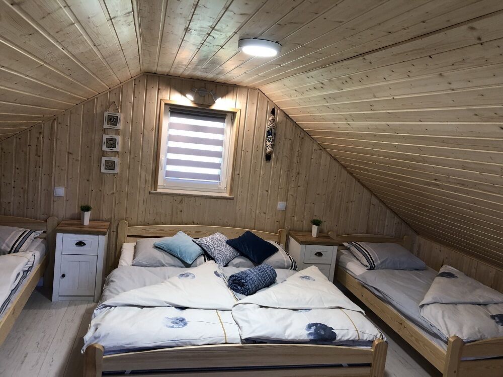 • Piętro: duża sypialnia (1 łóżko podwójne, 2 pojedyncze)