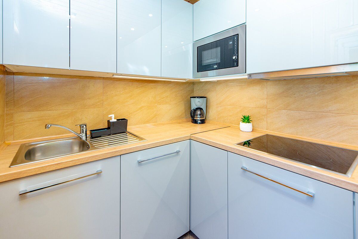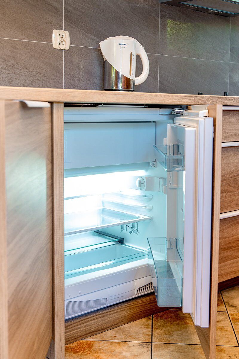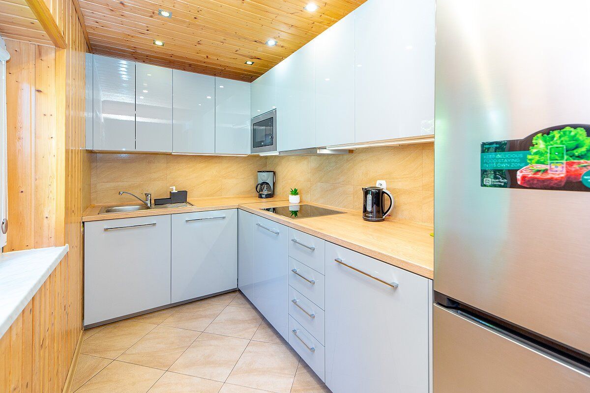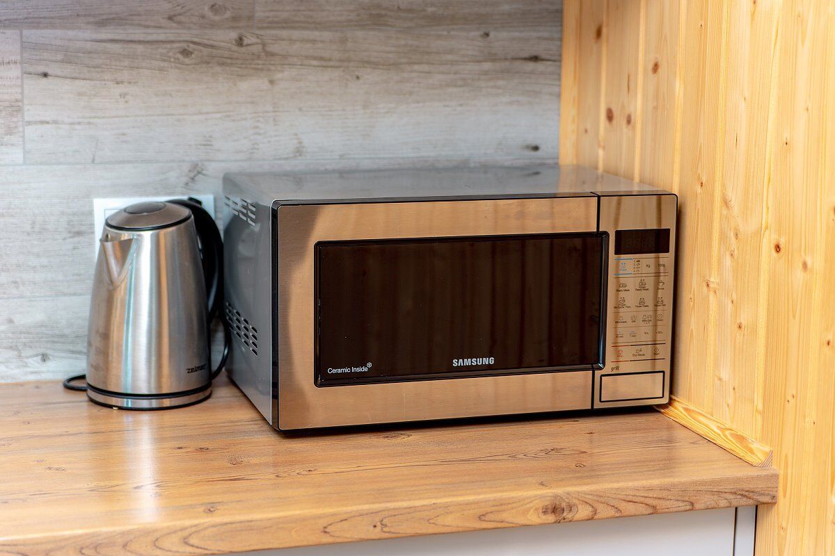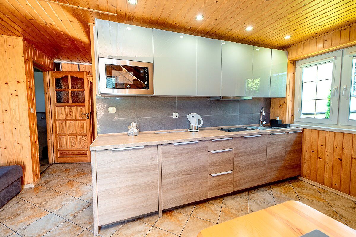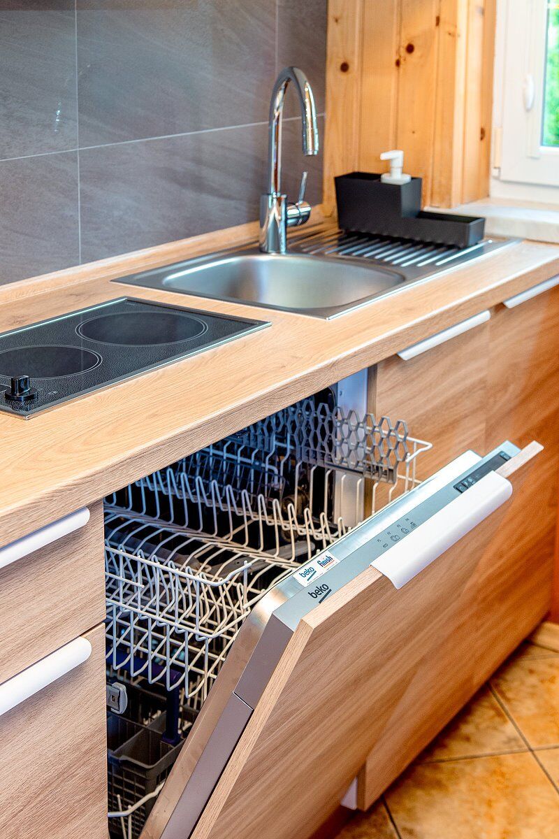 • Aneks kuchenny (czajnik, płyta ceramiczna, lodówka, zmywarka, mikrofala, pralka, sztućce)