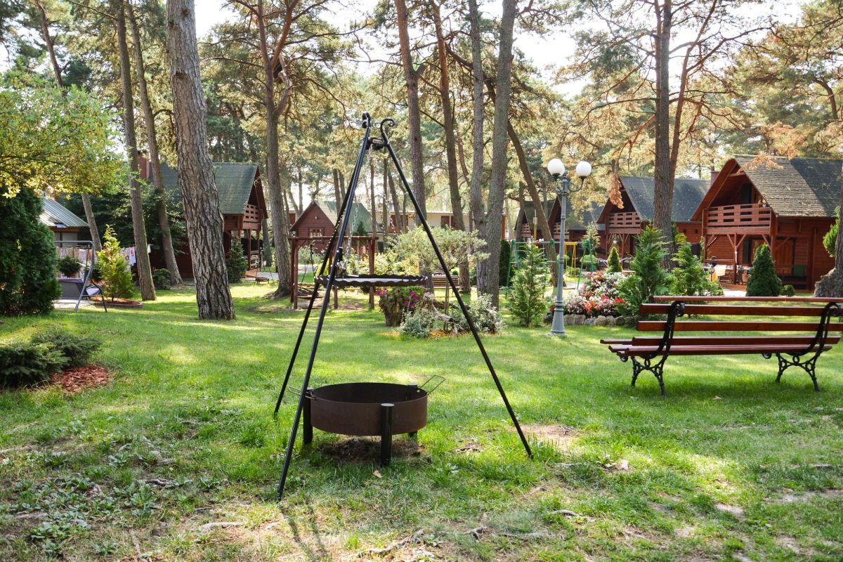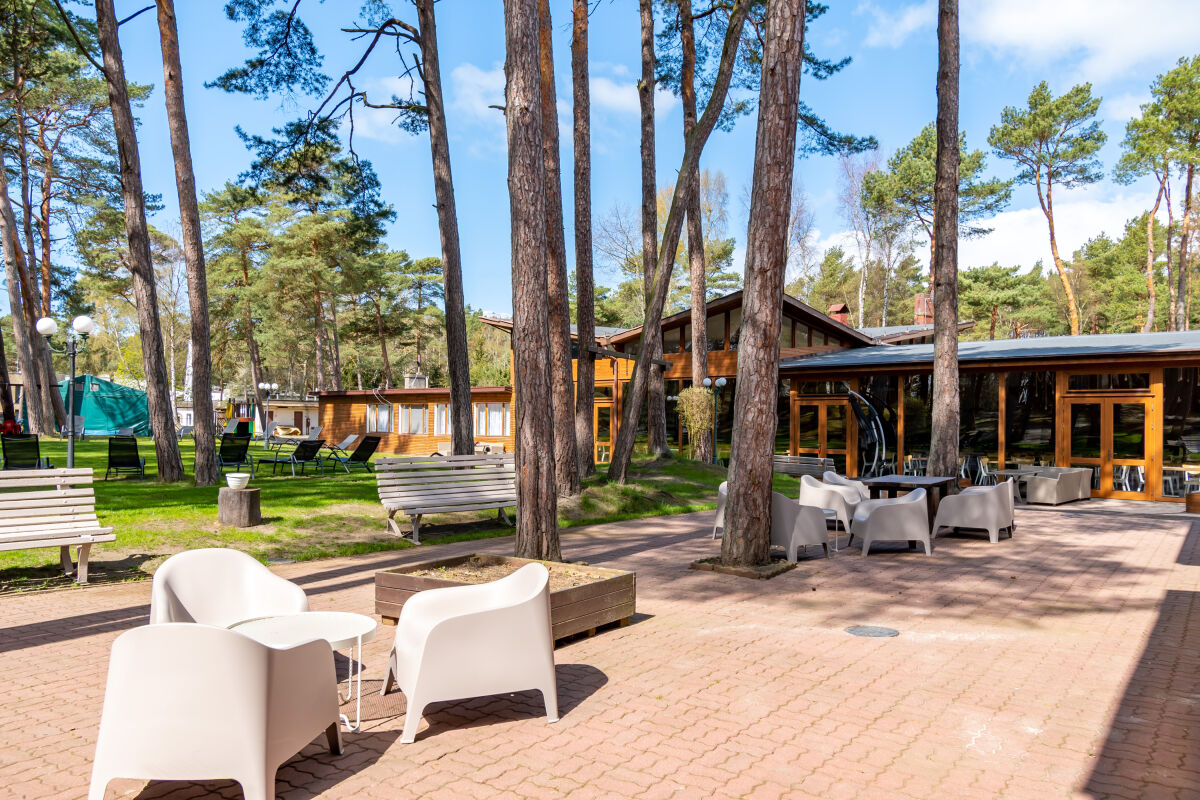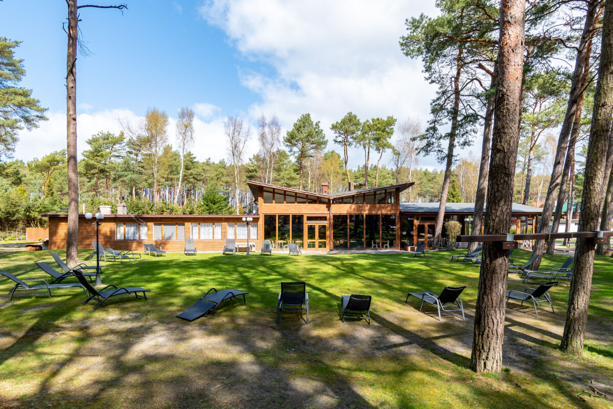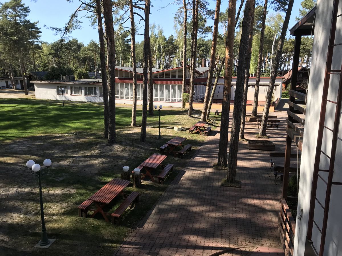 Teren ośrodka to 30000 m2 pięknego sosnowego lasu , gdzie można w spokoju znaleźć dla siebie chwilę relaksu .