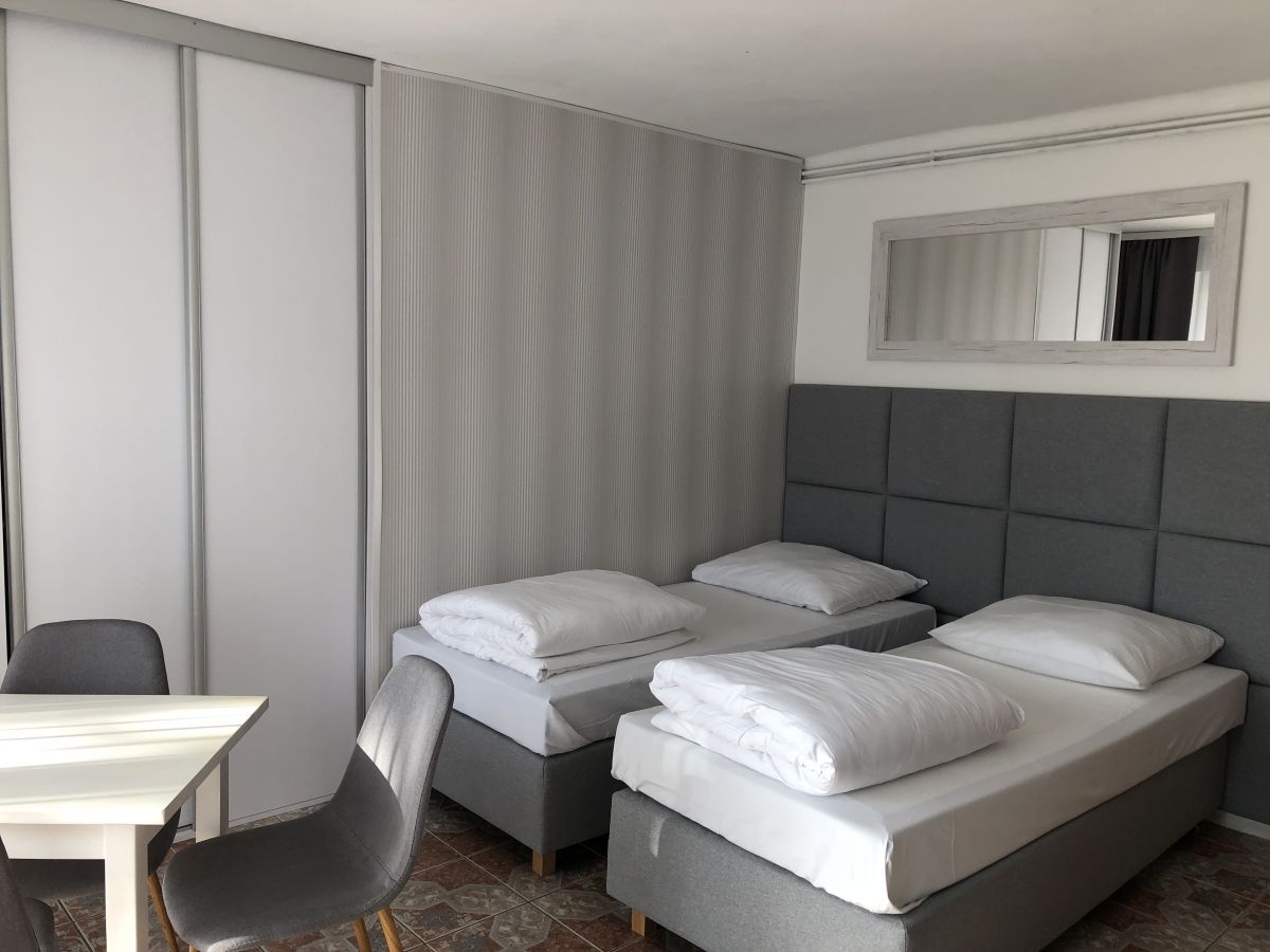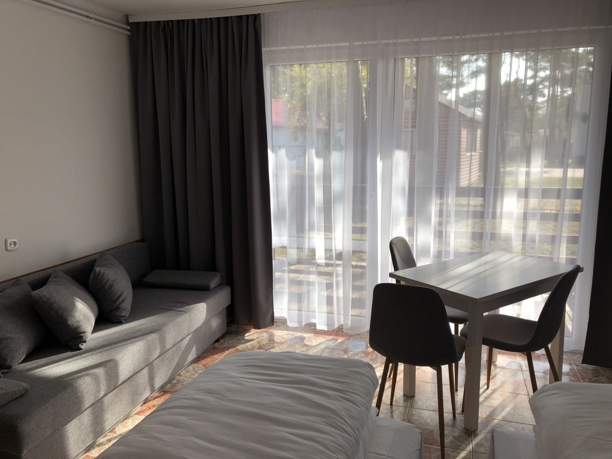 W nowo wyremontowanym pawilonie wczasowym czekają na gości 100 pokoi 2 , 3 osobowych oraz pokoje typu studio dla 4 osób (dwie osobne sypialnie o pow. 40 m2 )posiadające pełny węzeł sanitarny, balkon, Każdy pokój posiada wygodne łóżka kontynentalne , telewizor, radio, czajnik bezprzewodowy, koc plażowy, parawan. Każdy pokój posiada balkon lub taras o pow. Od 3 do 12 m2 , Z niektórych pokoi na ośrodku z balkonów można podziwiać nasze bałtyckie morze ,