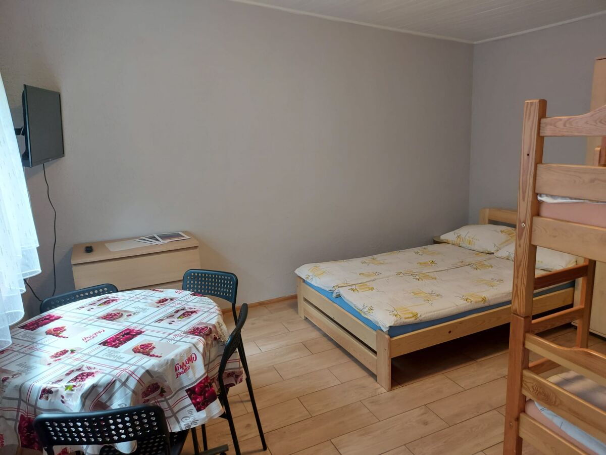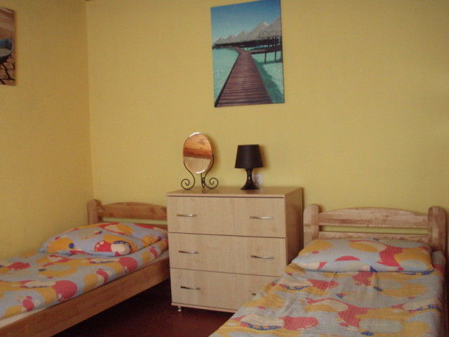 4. Dwa pokoje na piętrze domu z własną łazienką, ( wejście do łazienki przez ogólnodostępny korytarz), tv, wifi, oraz dostępem do dużej, wyposażonej kuchni w której można przygotowywać wszystkie posiłki. W każdym pokoju tv, wif, lodówka. Większy pokój posiada mały taras. Cena od 50zl/osoba