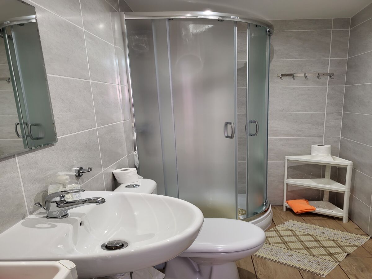 7. Apartament Duży (52 m) na parterze domu z tarasem i osobnym wejściem, składający się z : małego pokoju(2os), średniego pokoju (3os), większego pokoju (3-4os), toalety i łazienki z prysznicem oraz dużej, wyposażonej kuchni. Apartament posiada niezależne wejście.   Cena od 60zł osoba