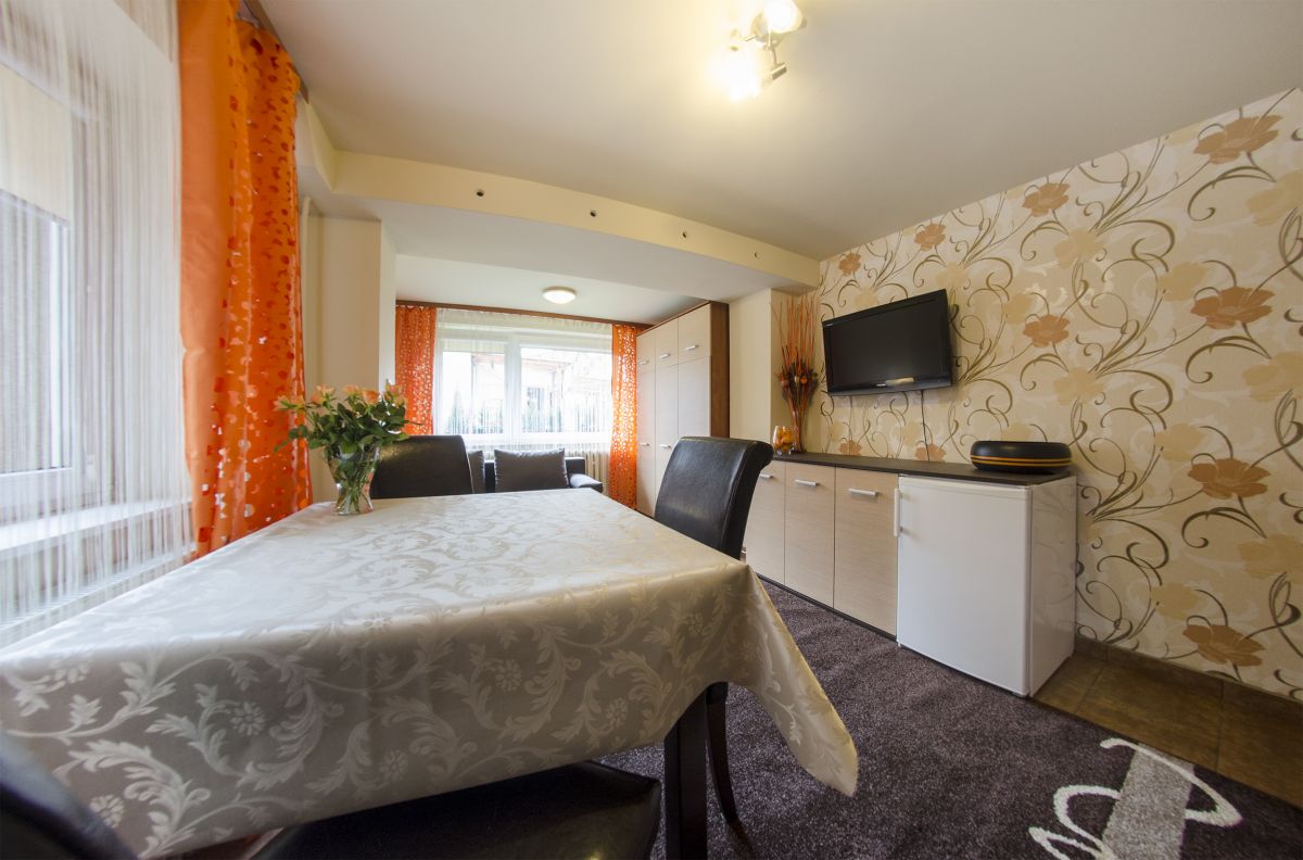 Nasze pastelowe, ciepłe i słoneczne pokoje wyposażone są standardowo w kanapy dwuosobowe, stoły, krzesła lub fotele, komody, stoliki nocne, szafy, wszystkie z TV kablową, możliwością podłączenia do Internetu,