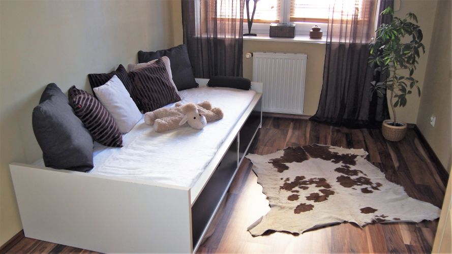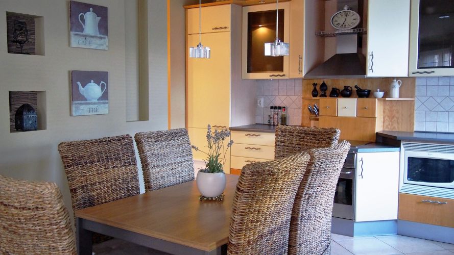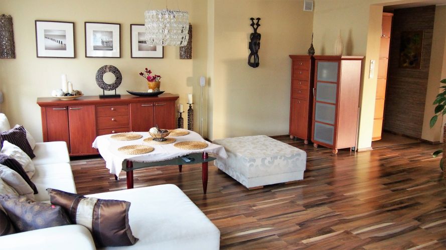 Apartament posiada 4 rozkładowe pokoje: 18mkw,11mkw,9mkw,32mkw. W 3 pokojach znajdują sie podwójne łóżka, w najmniejszym pokoju pojedyńcze. Kuchnia z jadalnią w pełni wyposażona wraz ze sprzętem AGD +zmywarka, mikrofala.  Otwarty salon 32 mkw. z wyjściem na balkon .Do dyspozycji TV , internet.