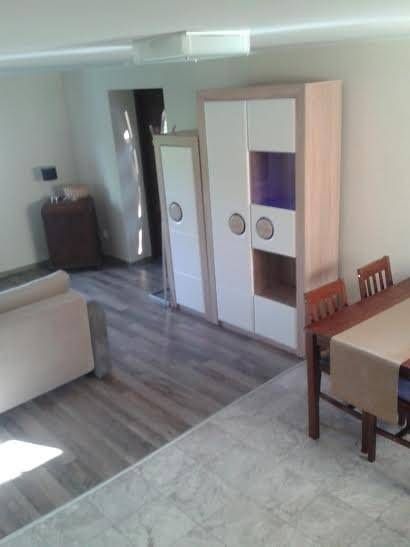 Apartament jest w pełni wyposażony. W salonie znajduje się rozkładana kanapa oraz duży telewizor.