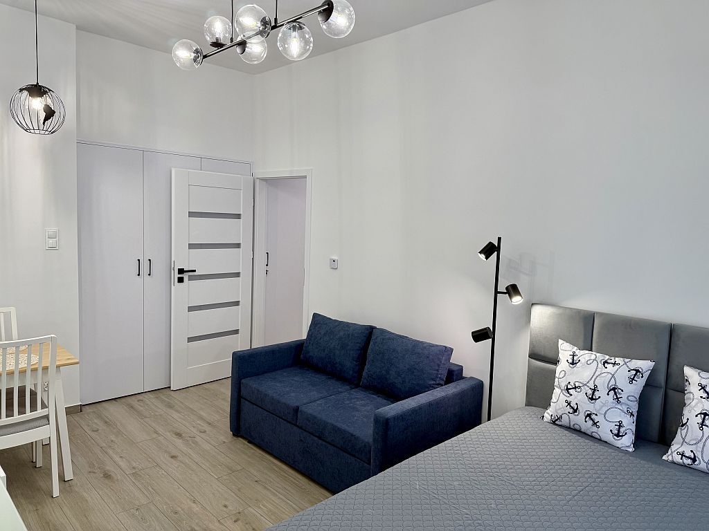 - pokoje dzienne: po dwie dwuosobowe rozkładane wersalki w każdym apartamencie