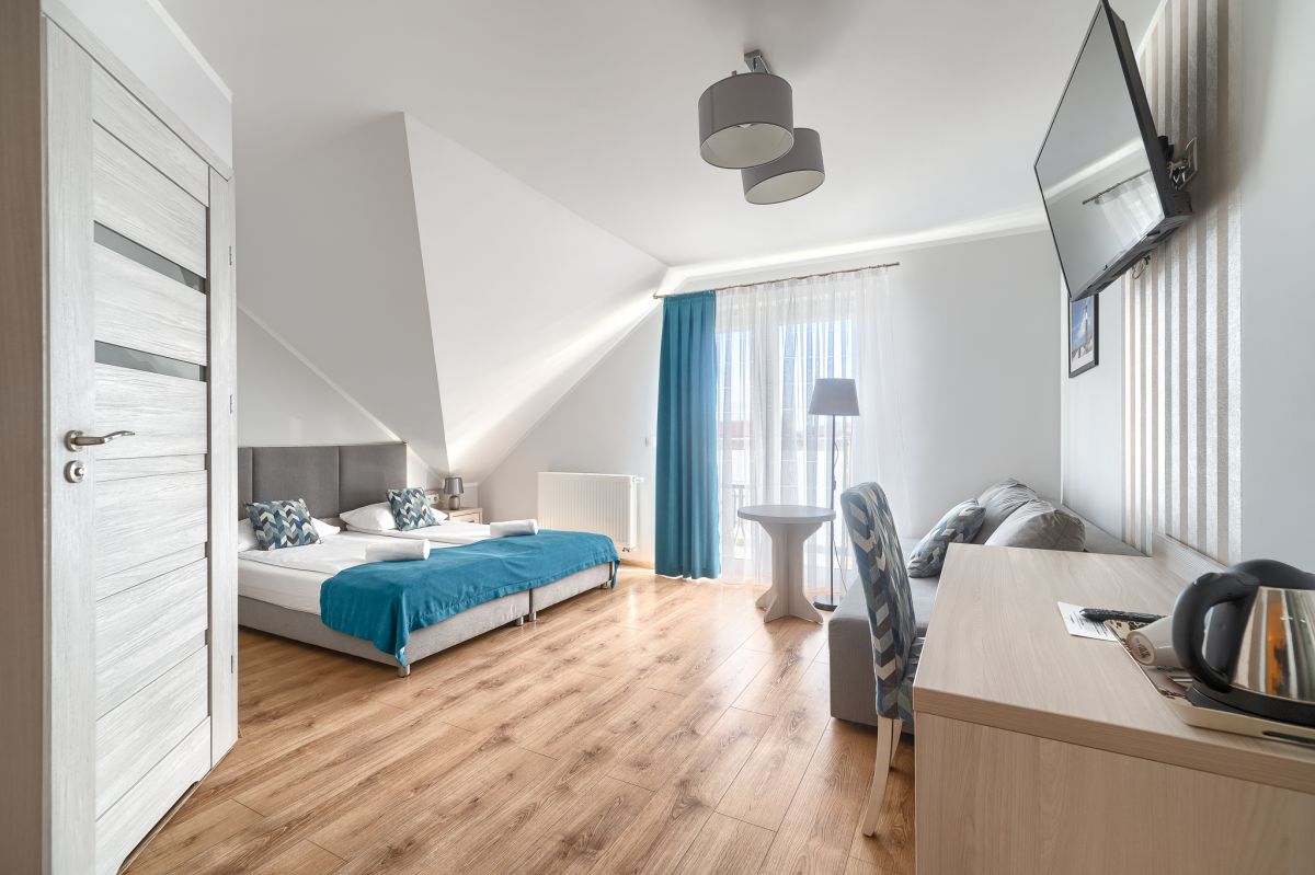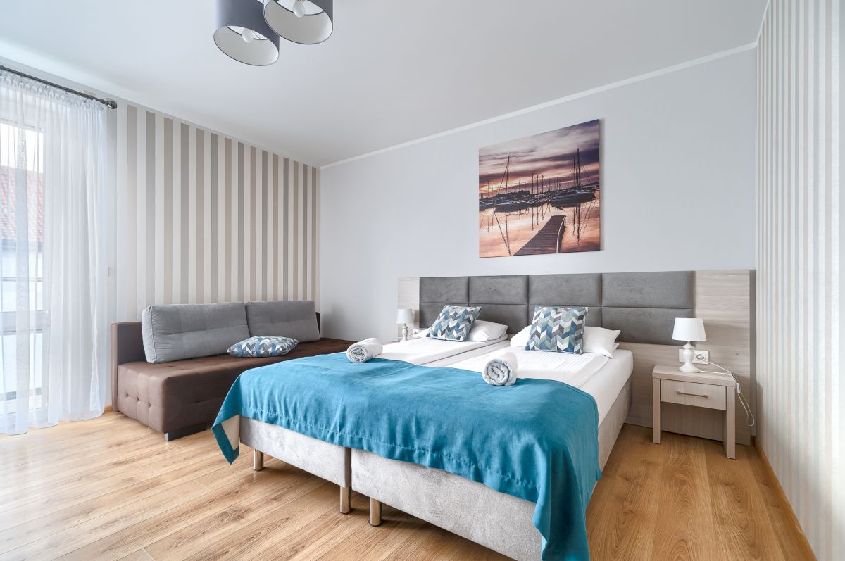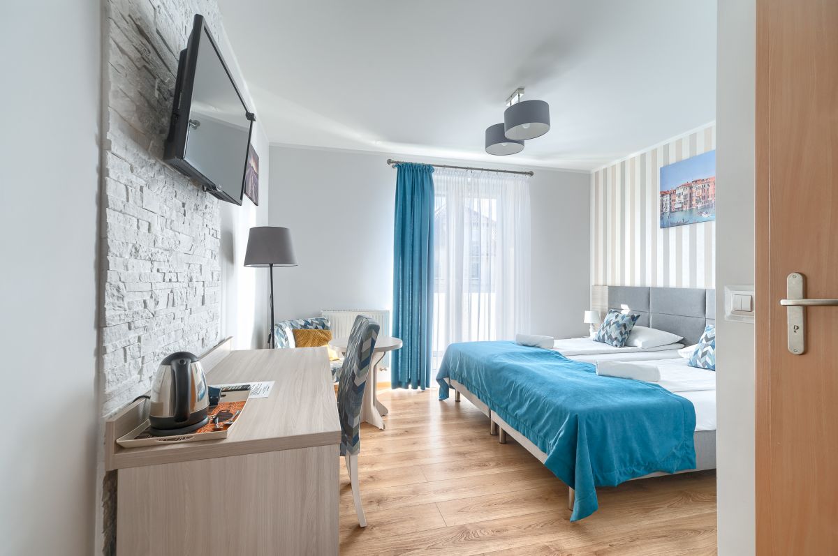 Obiekt posiada nowoczesne i komfortowe pokoje 2, 3, 4 osobowe jak również pokoje typu studio. Wszystkie pokoje są z łazienkami. Wszystkie pokoje są jasne, przestronne, przytulne i nowocześnie umeblowane, większość z balkonami