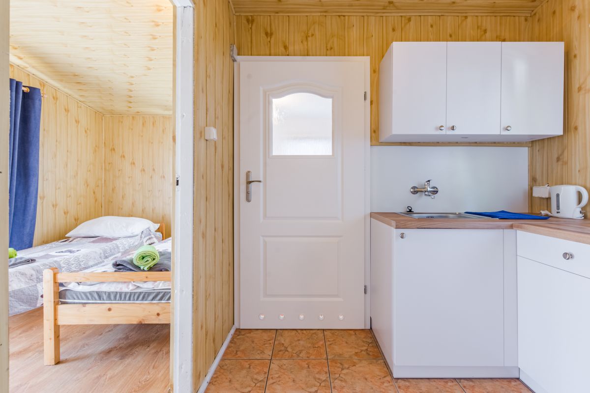 • Jednorodzinne przytulne domki drewniane typu "Mikołajki" z dwoma osobnymi wejściami - polecamy dla rodzin ze starszymi dziećmi lub dla grupy znajomych. Przejście z jednego do drugiego pokoju przez wspólną łazienką. W każdym pokoju mini aneks kuchenny (lodówka, naczynia, sztućce), telewizor LCD, zestaw mebli ogrodowych, sprzęt plażowy.