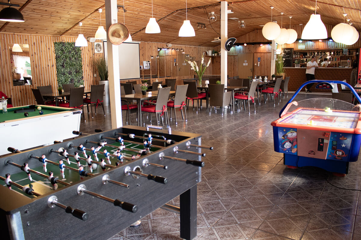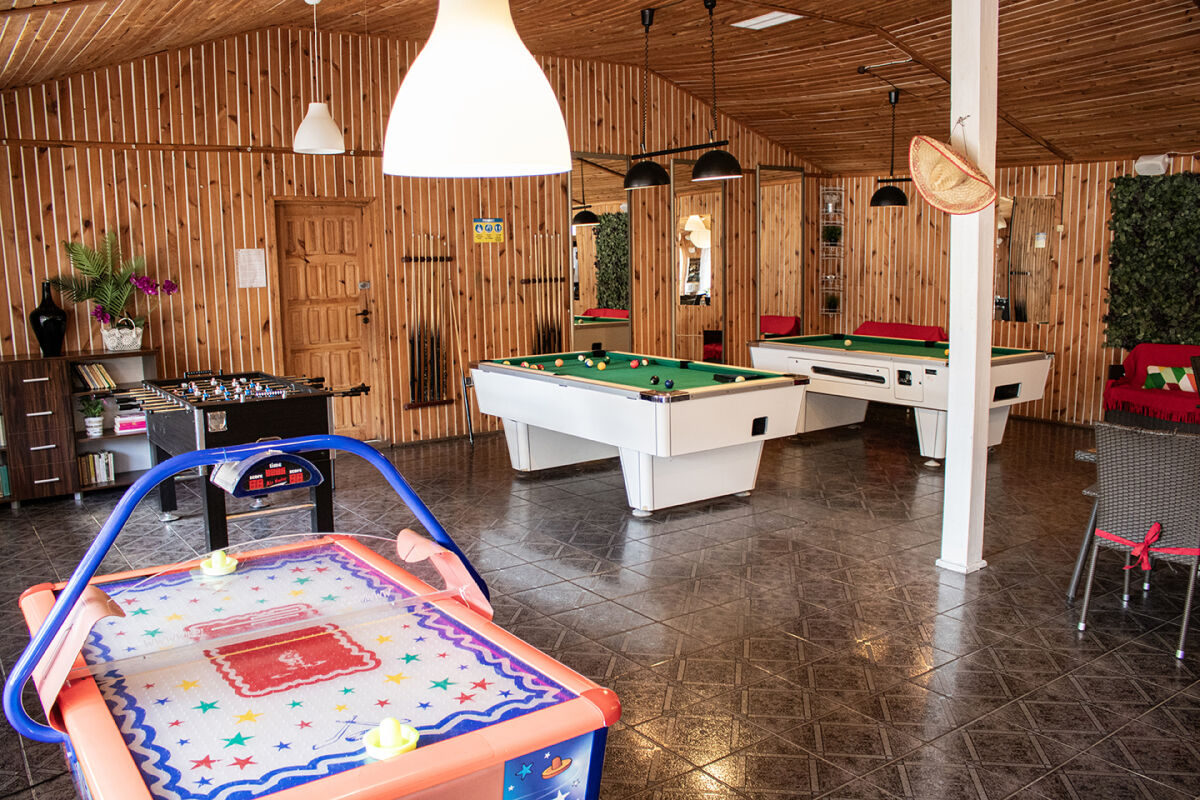 • idealne miejsce dla rodzin z dziećmi - animacje dla dzieci, basen, zjeżdżalnia wodna, plac zabaw, pokój zabaw razie niepogody, kawiarnia - bilardy, stół ping-pongowy, cymbergaj, boisko sportowe, trampolina, jacuzzi.