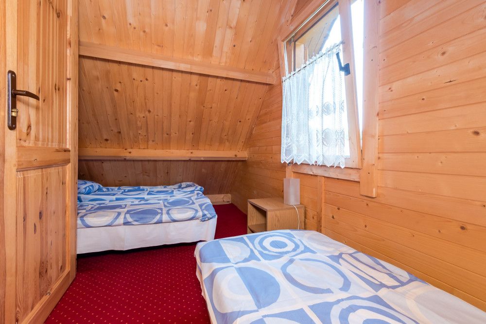 Na piętrze domku znajdują się 2 niezależne, wygodne sypialnie (jedna z balkonem). Zamontowane są również barierki uniemożliwiające wejście dzieci na schody.