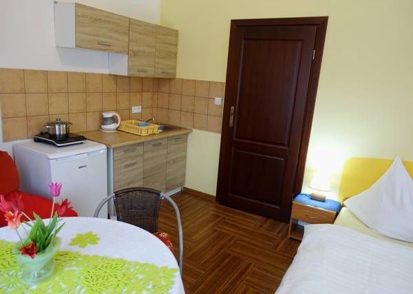 W ofercie do wynajęcia apartamenty 1-, 2-, 3- pokojowe z łazienką, aneksem kuchennym w pokoju, bezpośrednim wyjściem do ogrodu lub balkonem. Każdy apartament posiada: wygodne łóżko małżeńskie, łazienkę z prysznicem lub wanną, aneks kuchenny z wyposażeniem i płytą elektryczną.