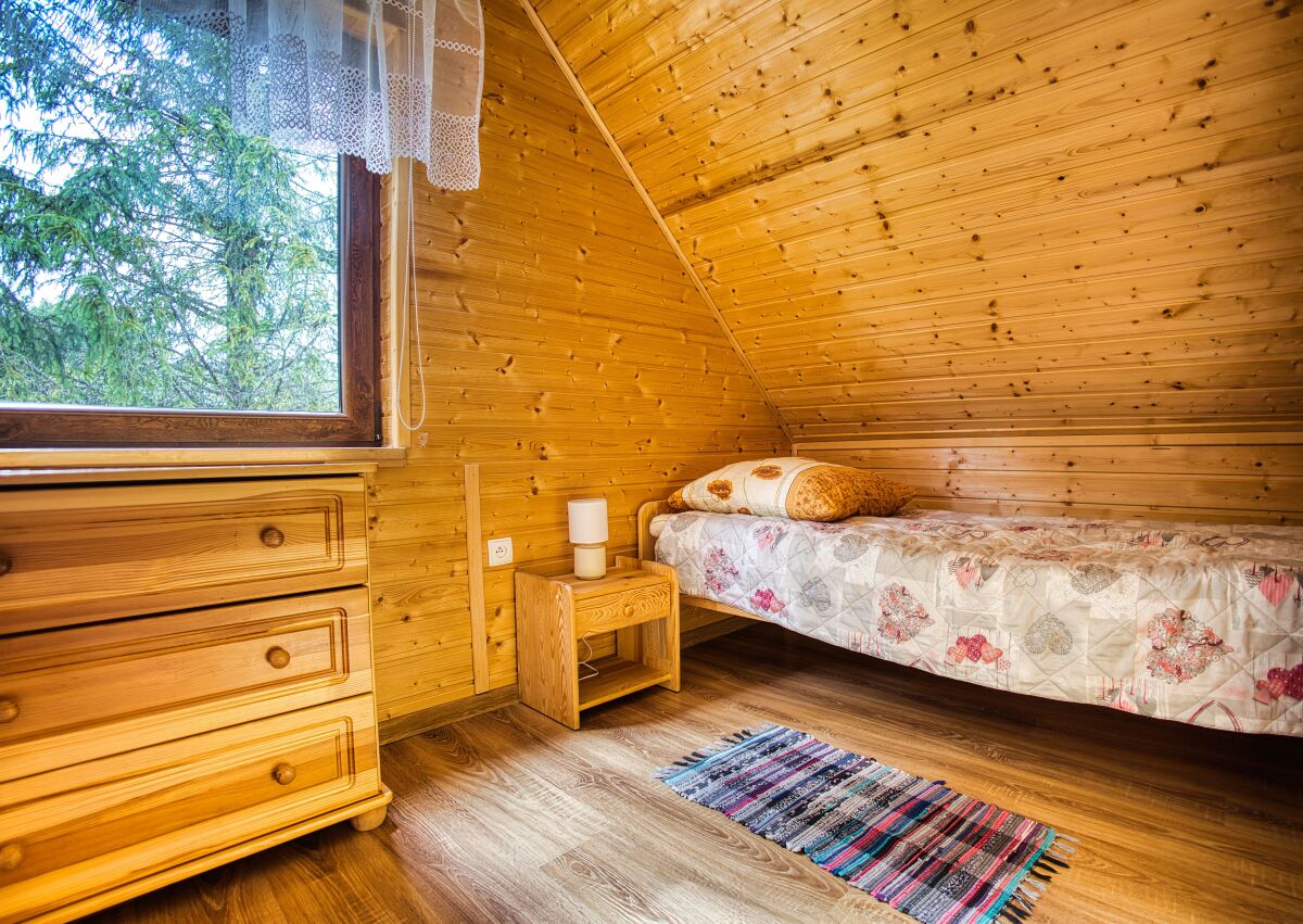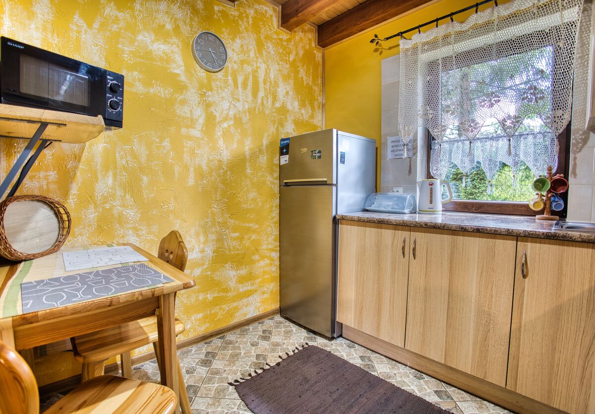 W sezonie grzewczym domek ogrzewany jest kominkiem- drewno w cenie domku.