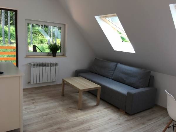 W pełni wyposażone mieszkania, wygodne, przystosowane do miłego spędzenia czasu o każdej porze roku. Mieszkania składają się z aneksu kuchennego (lodówka, płyta indukcyjna, czajnik elektryczny, komplet naczyń) z salonem, osobnego pokoju oraz łazienki. W jednym mieszkaniu znajduje się również taras z ławeczką i hamakiem, z którego roztacza się widok na Góry.