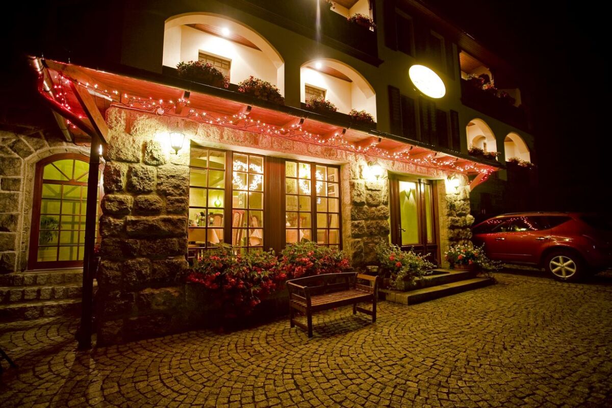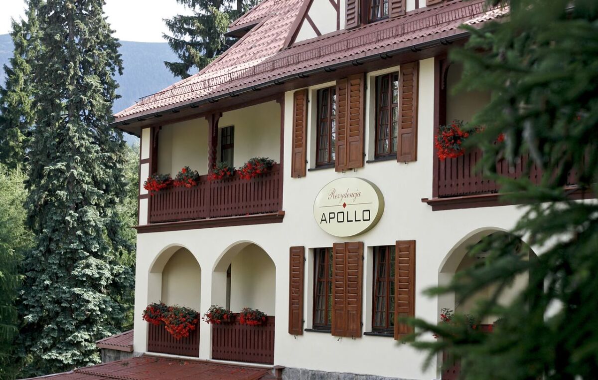 Obiekt, dawniej nazywany Rezydencją Apollo, jest odrestaurowanym obiektem z zachowaną architekturą z końca XIX wieku, co sprawia, że łączy on styl i wysoki standard. Hotel położony jest wśród stuletnich świerków i modrzewi, w cichej i spokojnej okolicy, a jednocześnie od centrum Karpacza dzieli go jedyne 10 minut. Z okien można podziwiać piękną panoramę Karkonoszy wraz z najwyższym szczytem Śnieżką. Stąd turyści wyruszają na Śnieżkę, do Samotni, czy na Słonecznik. Od najbliższych kanapowych wyciągów narciarskich dzieli nas jedynie 200 m. (Biały Jar), a od Kopy jesteśmy oddaleni o 700 m. Goście Hotelu mogą korzystać bezpłatnie z ogrodzonego parkingu i bezprzewodowego Internetu. Zajmujemy się również organizacją wycieczek do najpiękniejszych miejsc regionu : Praga, Drezno, Skalne Miasto, Park Safari, Wrocław.