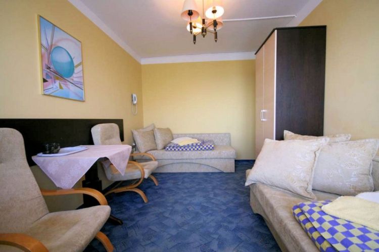 Dla Gości przygotowano przytulne pokoje 1-, 2-, 3-, 4-osobowe, wyposażone w łazienkę, TV SAT, lodówkę, radio budzik. Pokoje typu studio z łazienką: (1+1) (2+1) (2+2) (2+3) składające się z dwóch niezależnych pokoi wyposażonych w TV, lodówkę, radio. Pokoje o podwyższonym standardzie: 2-, 4–osobowe (z możliwością dostawki) wyposażone w łazienkę, TV SAT, lodówkę, składające się z dwóch pomieszczeń (sypialni z łożem małżeńskim lub tapczanami oraz pokoju dziennego z rozkładanymi sofami).