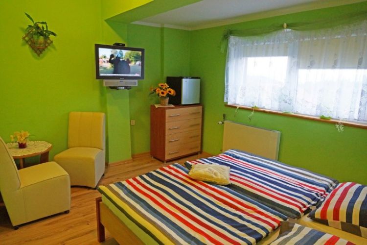 Do Państwa dyspozycji przygotowaliśmy 10 pokoi 2-, 3- oraz 4-osobowych. W trosce o pełny komfort pobytu nasze pokoje są klimatyzowane, z pełnym węzłem sanitarnym, wyposażone w TV-sat, dostęp do internetu WI-FI oraz możliwość skorzystania z w pełni wyposażonej kuchni oraz jadalni.